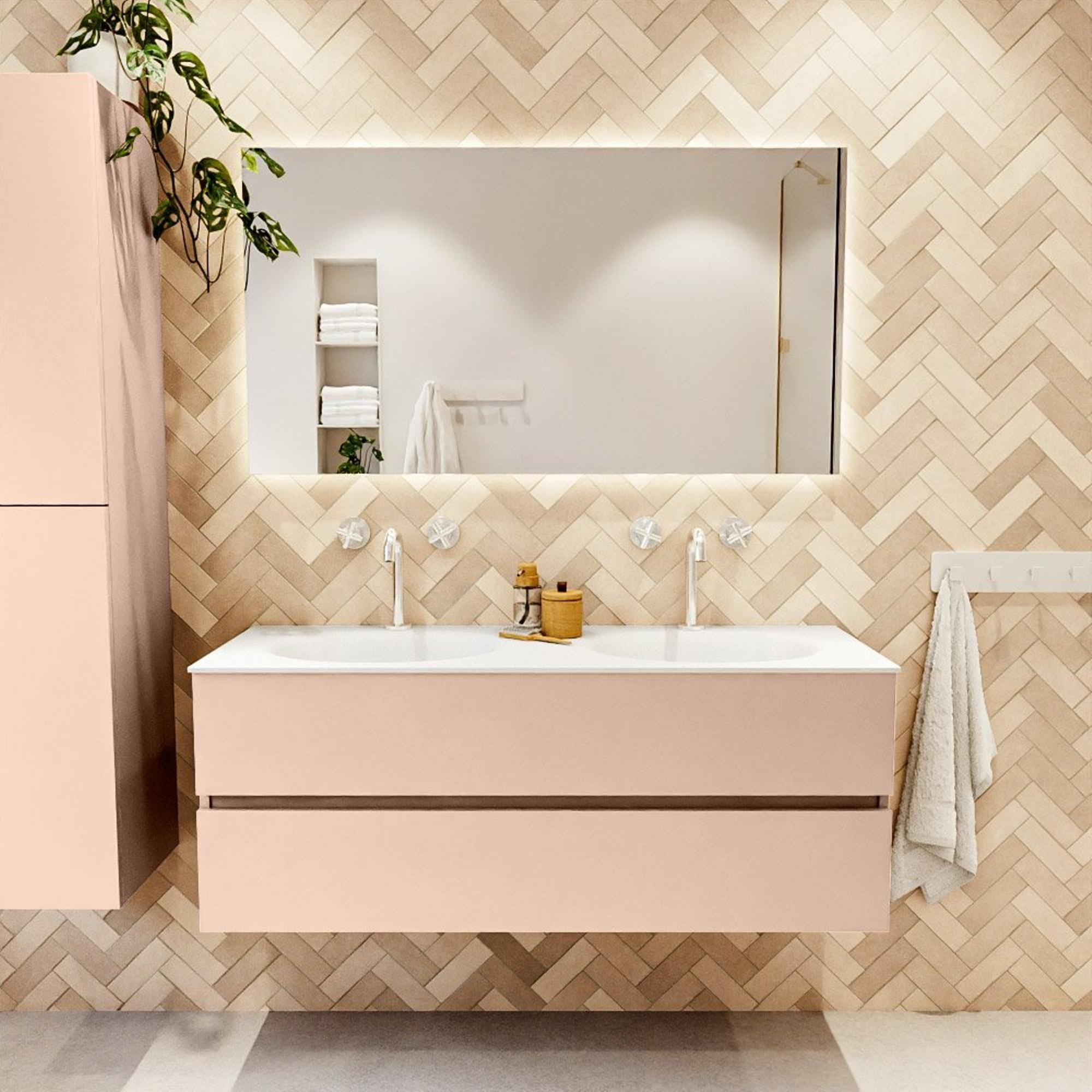 MONDIAZ VICA Badkamermeubelset - 130cm - onderkast rosee- 2 lades - wastafel moon dubbel - 2 kraangaten - 60cm hoge versie - talc