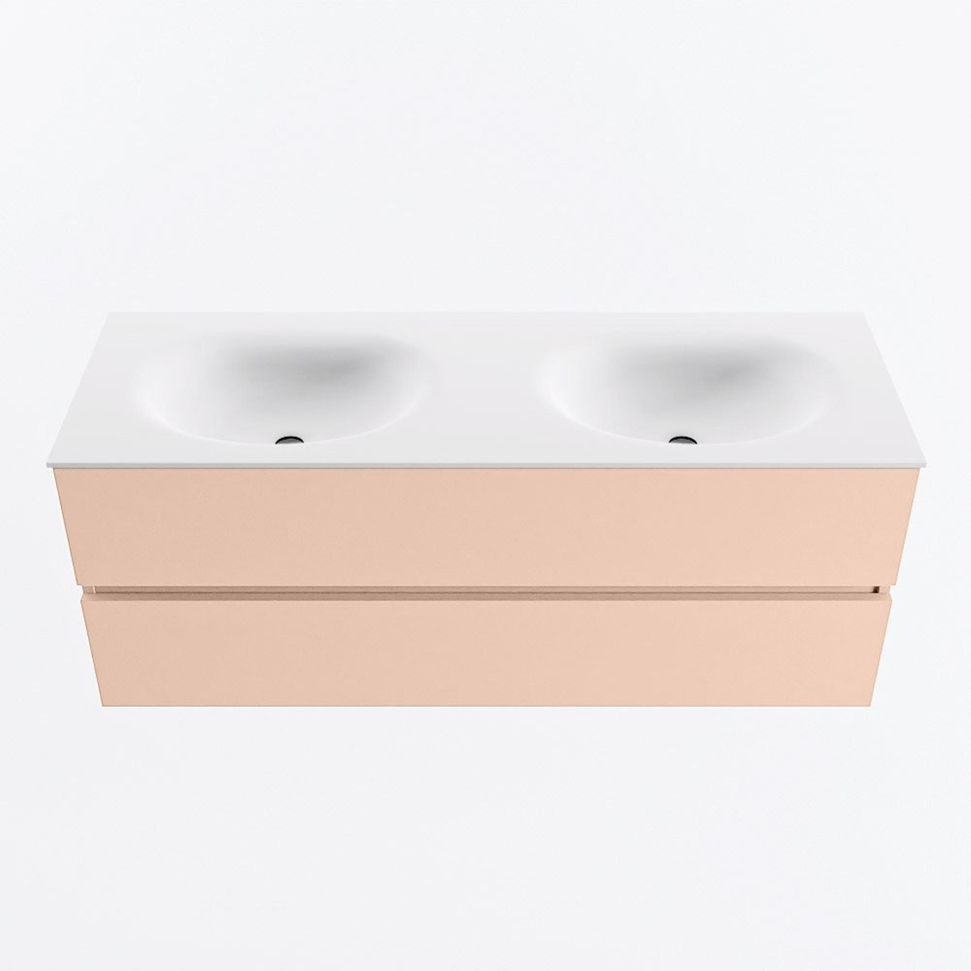 MONDIAZ VICA Badkamermeubelset - 130cm - onderkast rosee- 2 lades - wastafel moon dubbel - zonder kraangaten - 60cm hoge versie - talc