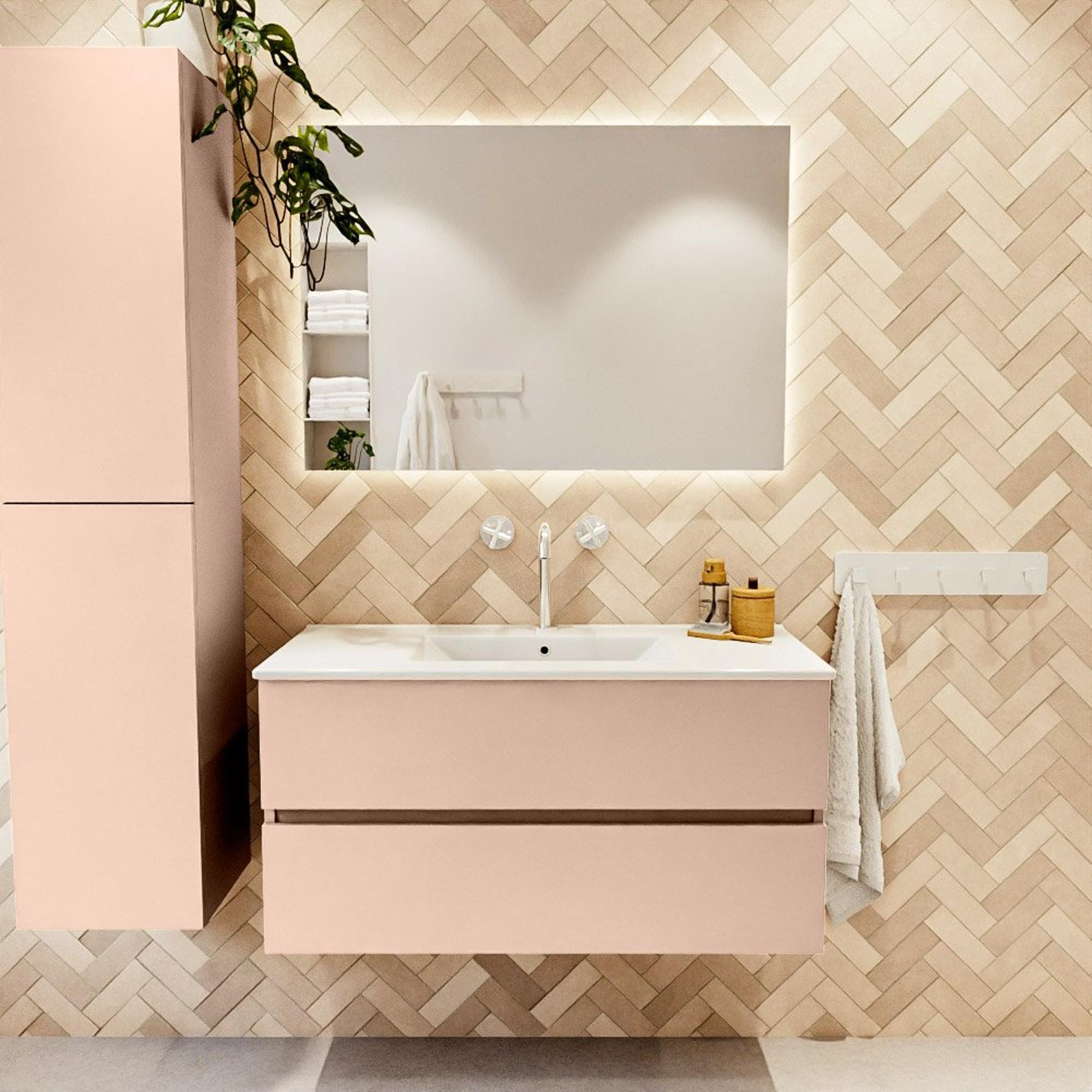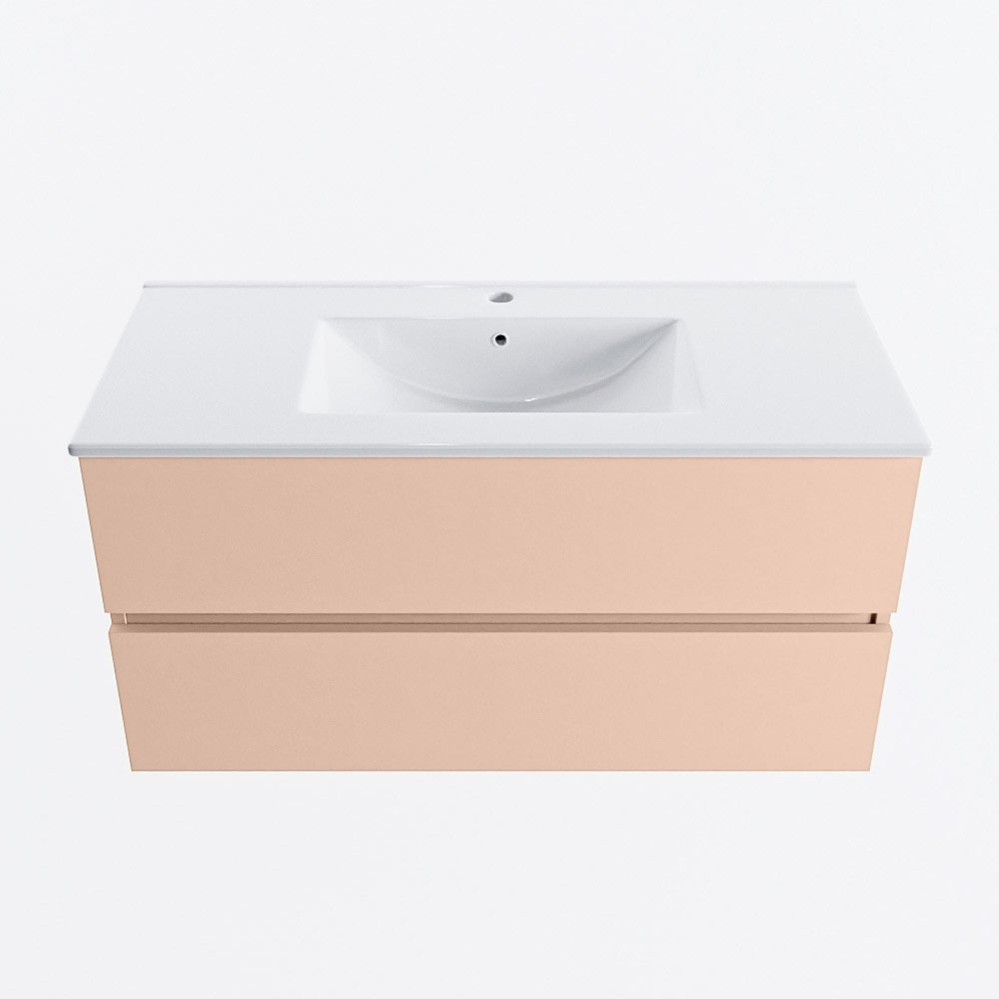 MONDIAZ VICA Badkamermeubelset - 100cm - onderkast rosee- 2 lades - wastafel denia midden - 1 kraangat - 60cm hoge versie - wit glans