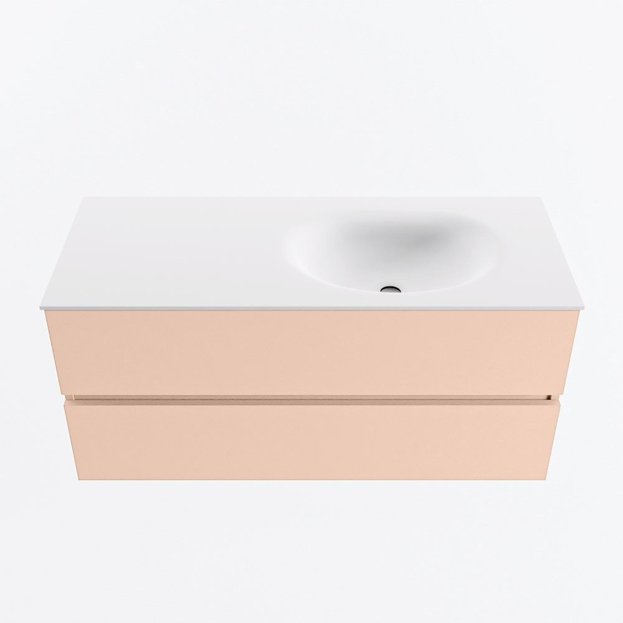 MONDIAZ VICA Badkamermeubelset - 110cm - onderkast rosee- 2 lades - wastafel moon rechts - 1 kraangat - 60cm hoge versie - talc