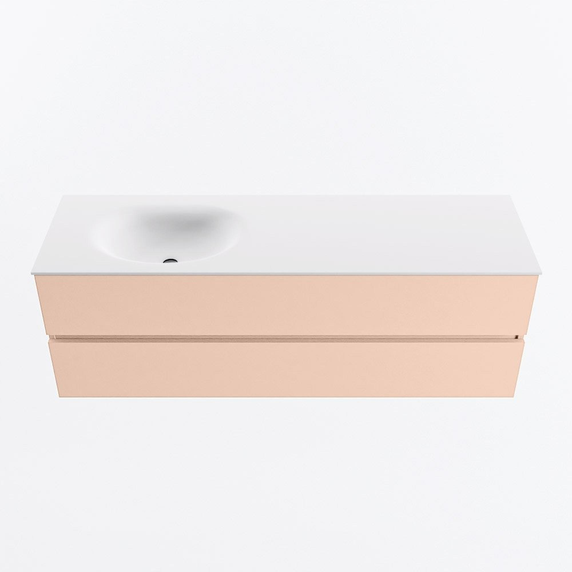 MONDIAZ VICA Badkamermeubelset - 150cm - onderkast rosee- 2 lades - wastafel moon links - 1 kraangat - 60cm hoge versie - talc