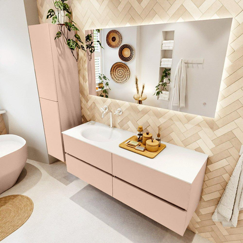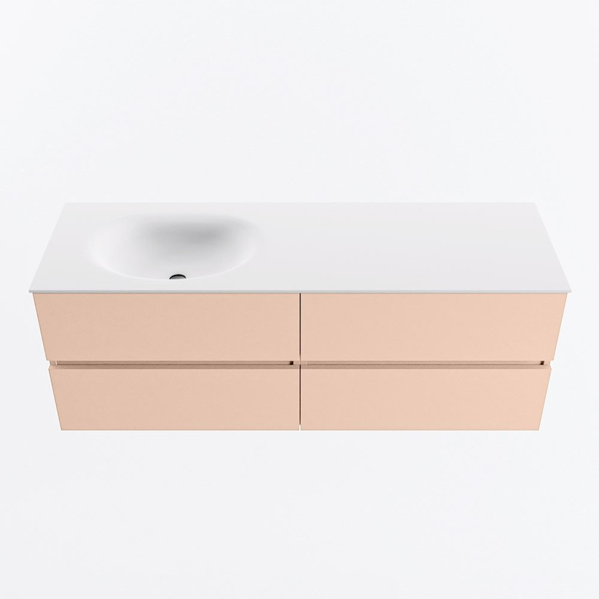 MONDIAZ VICA Badkamermeubelset - 140cm - onderkast rosee - 4 lades - wastafel moon links - 1 kraangat - 60cm hoge versie - talc
