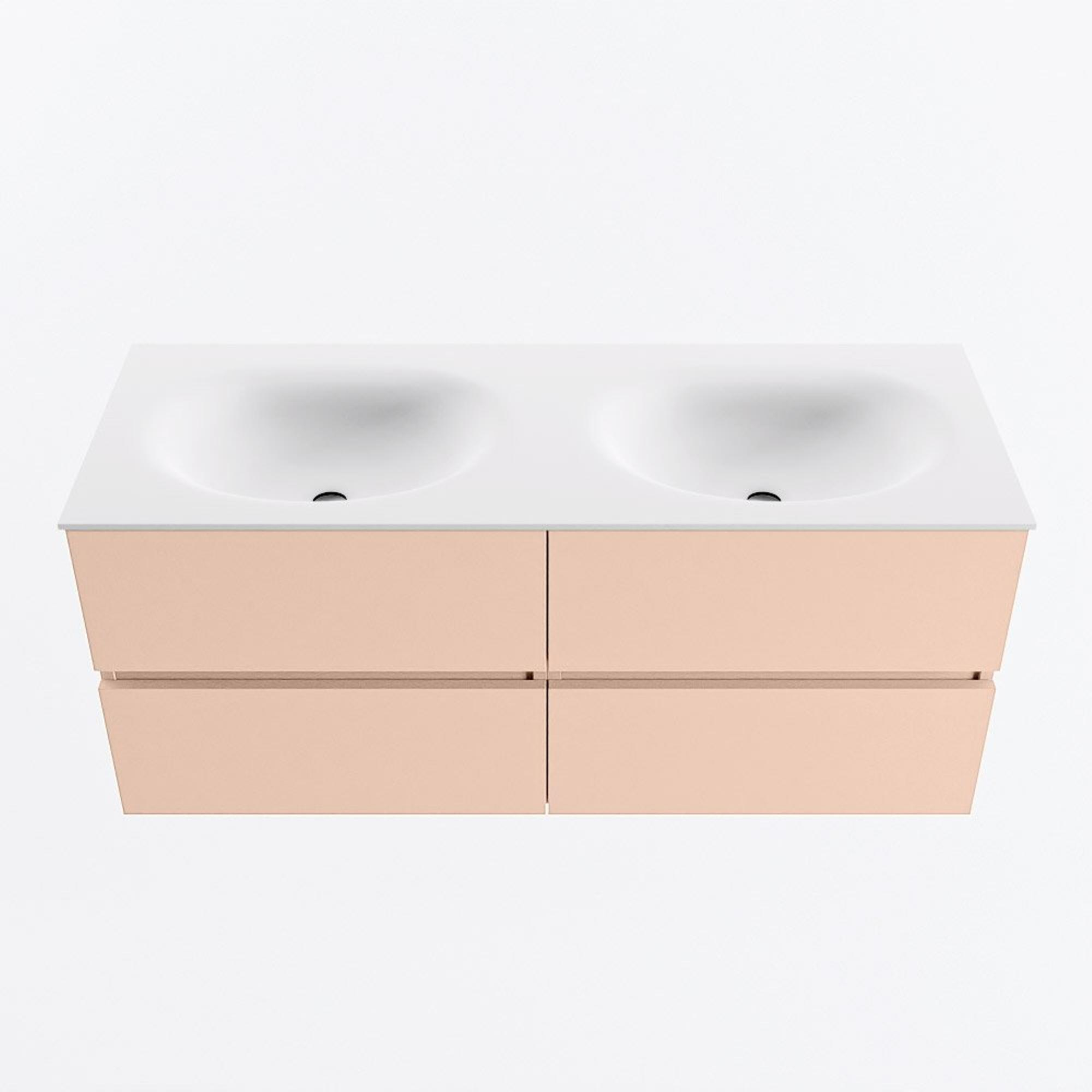 MONDIAZ VICA Badkamermeubelset - 120cm - onderkast rosee - 4 lades - wastafel moon dubbel - zonder kraangaten - 60cm hoge versie - talc