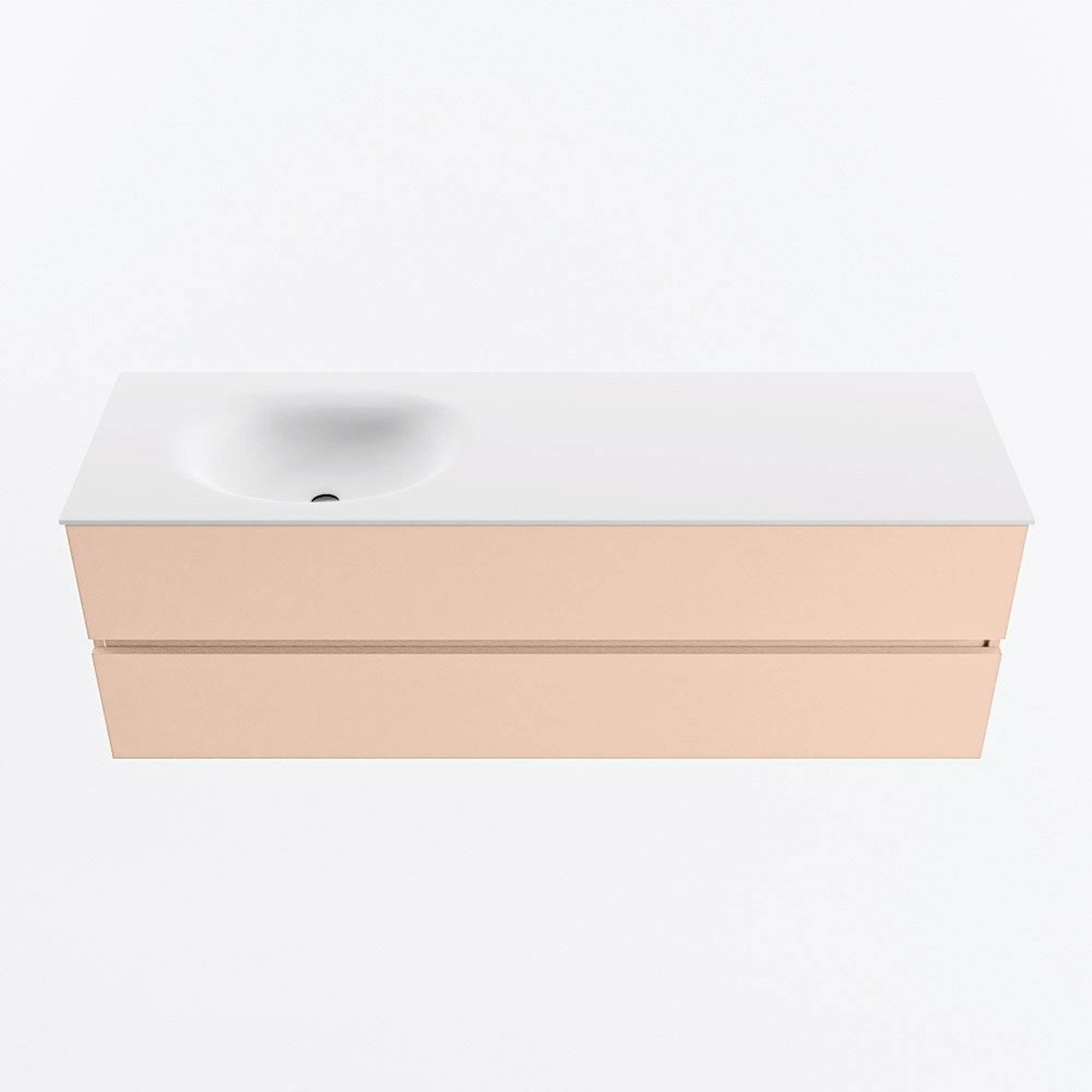 MONDIAZ VICA Badkamermeubelset - 150cm - onderkast rosee- 2 lades - wastafel moon links - zonder kraangaten - 60cm hoge versie - talc