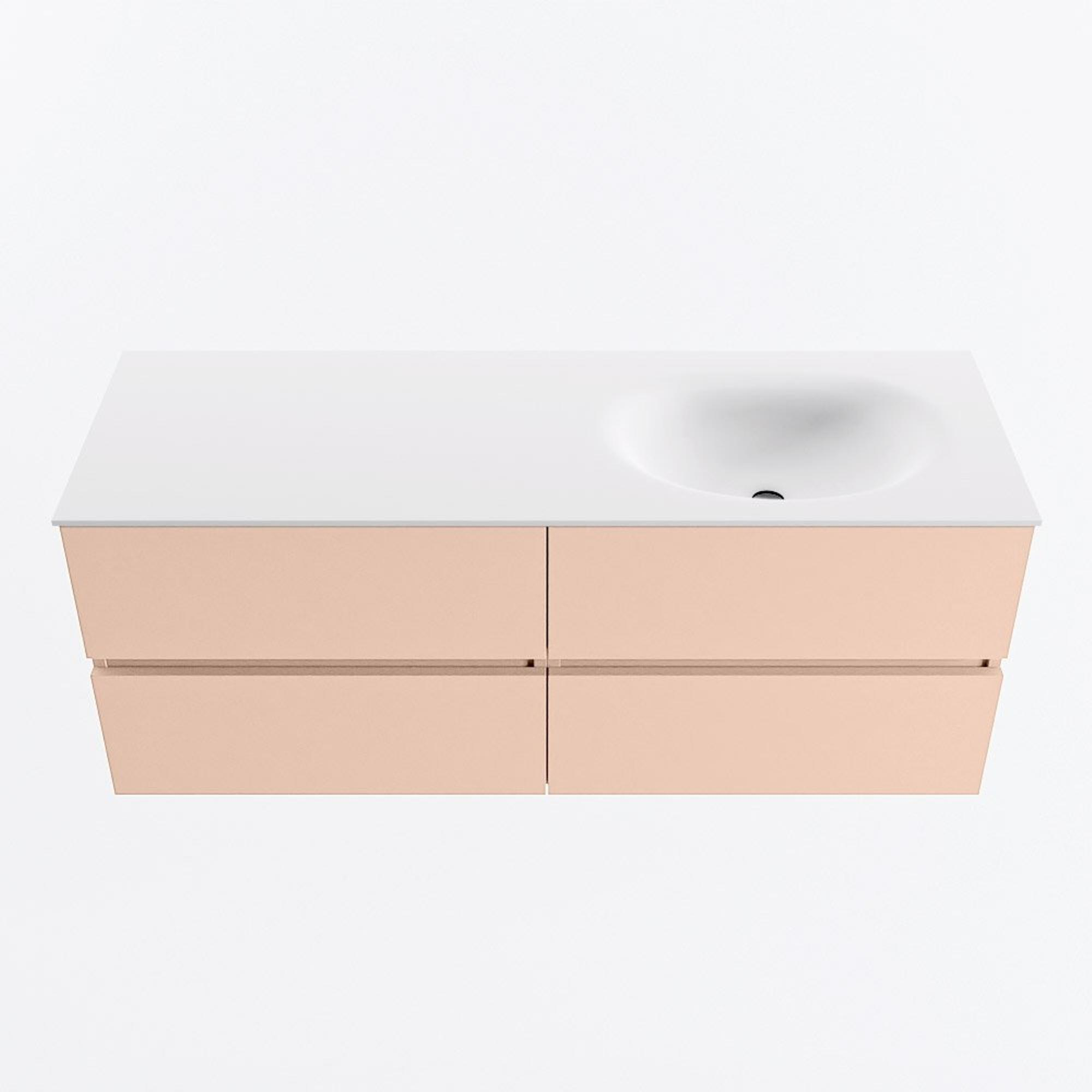 MONDIAZ VICA Badkamermeubelset - 130cm - onderkast rosee - 4 lades - wastafel moon rechts - zonder kraangaten - 60cm hoge versie - talc
