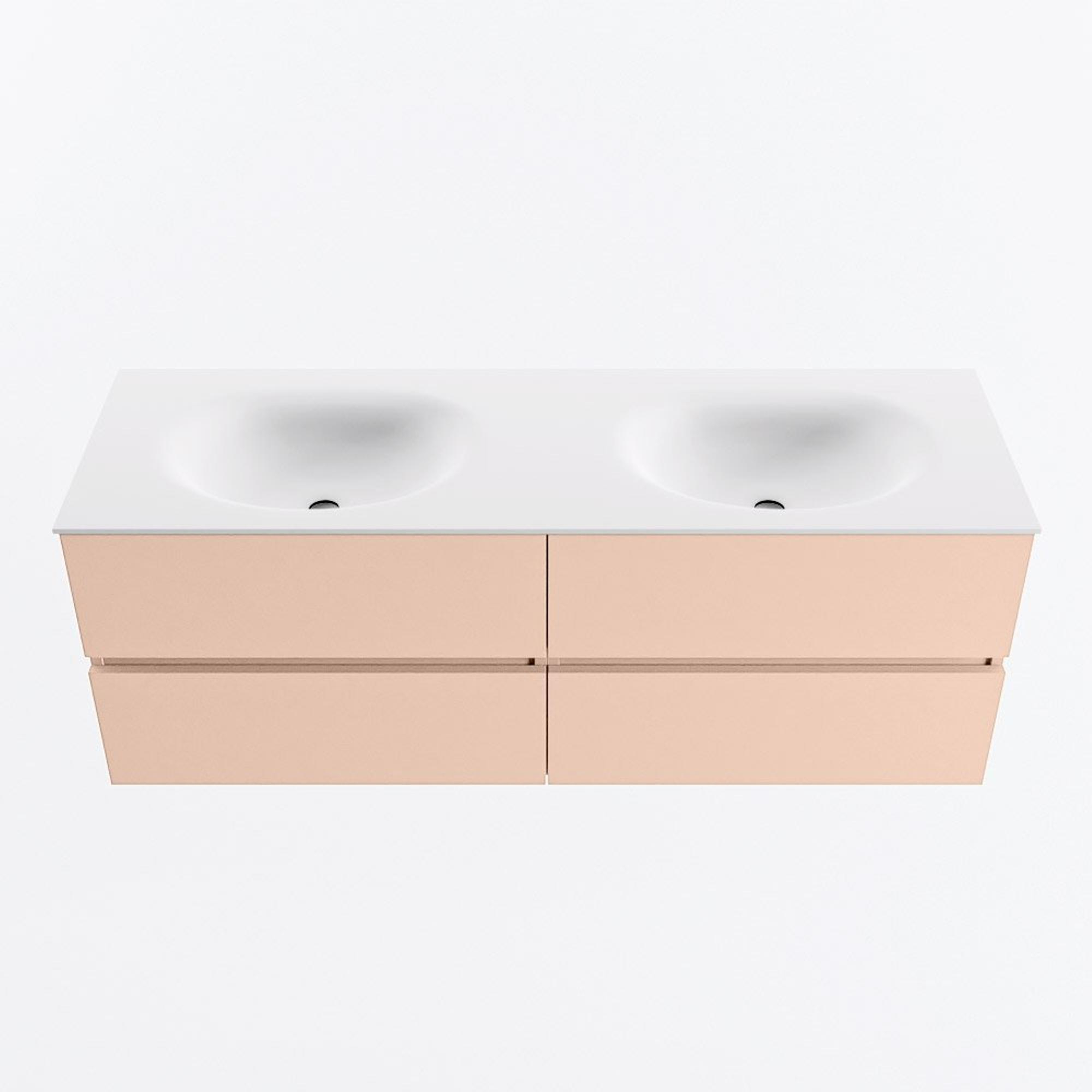 MONDIAZ VICA Badkamermeubelset - 140cm - onderkast rosee - 4 lades - wastafel moon dubbel - 2 kraangaten - 60cm hoge versie - talc