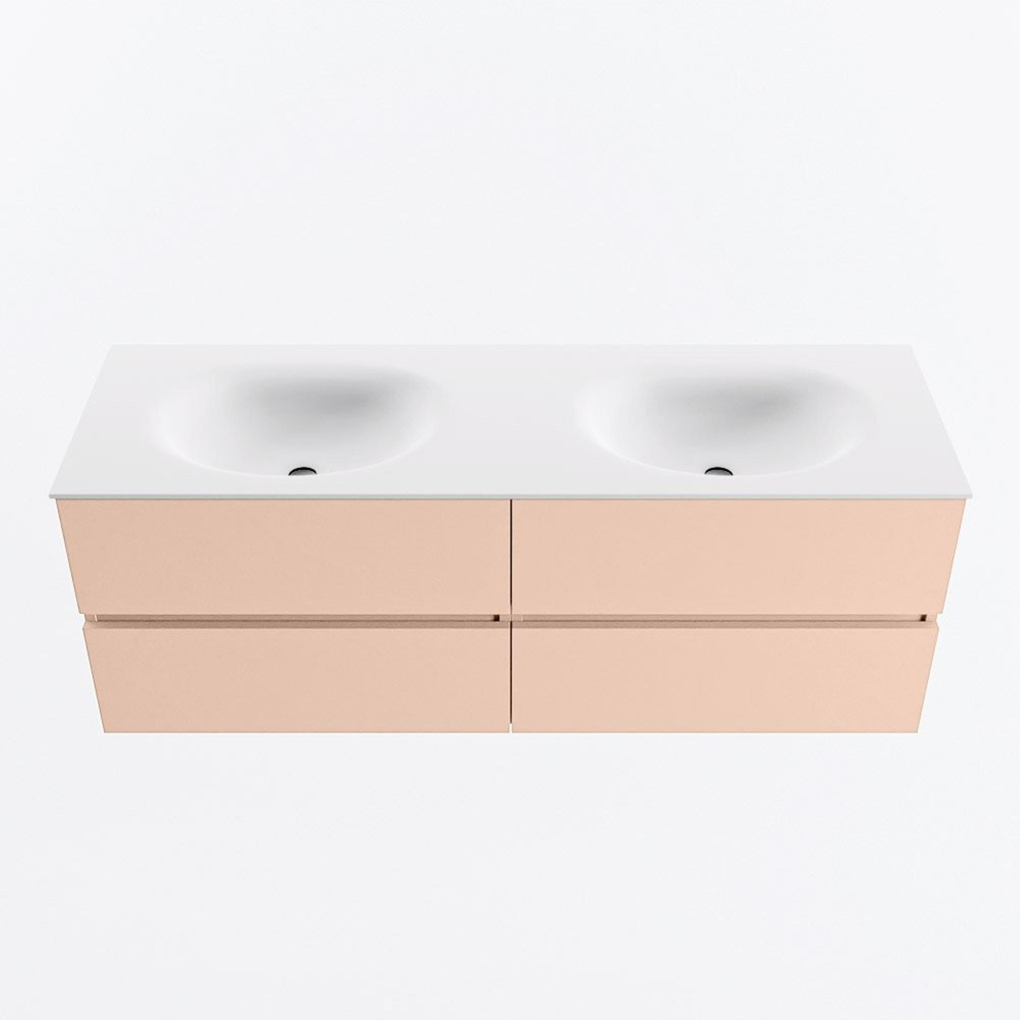 MONDIAZ VICA Badkamermeubelset - 140cm - onderkast rosee - 4 lades - wastafel moon dubbel - zonder kraangaten - 60cm hoge versie - talc