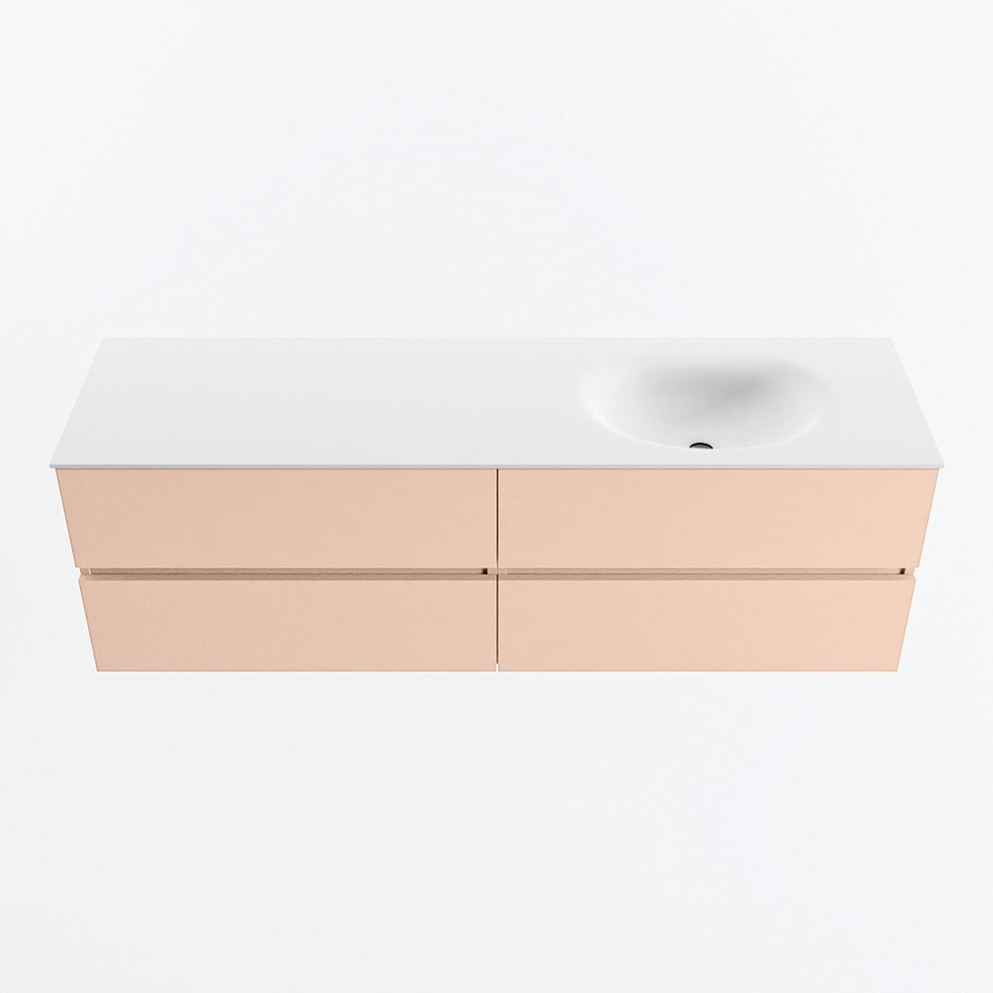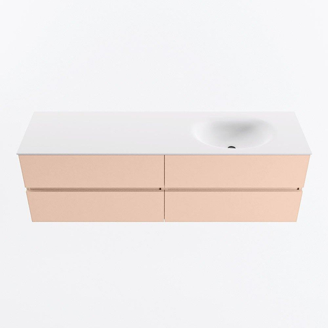 MONDIAZ Vica Badkamermeubelset - 160cm - onderkast rosee - 4 lades - wastafel moon rechts - 1 kraangat - 60cm hoge versie - talc