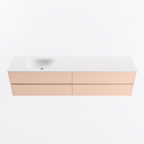 MONDIAZ VICA Badkamermeubelset - 200cm - onderkast rosee - 4 lades - wastafel moon links - 1 kraangat - 60cm hoge versie - talc