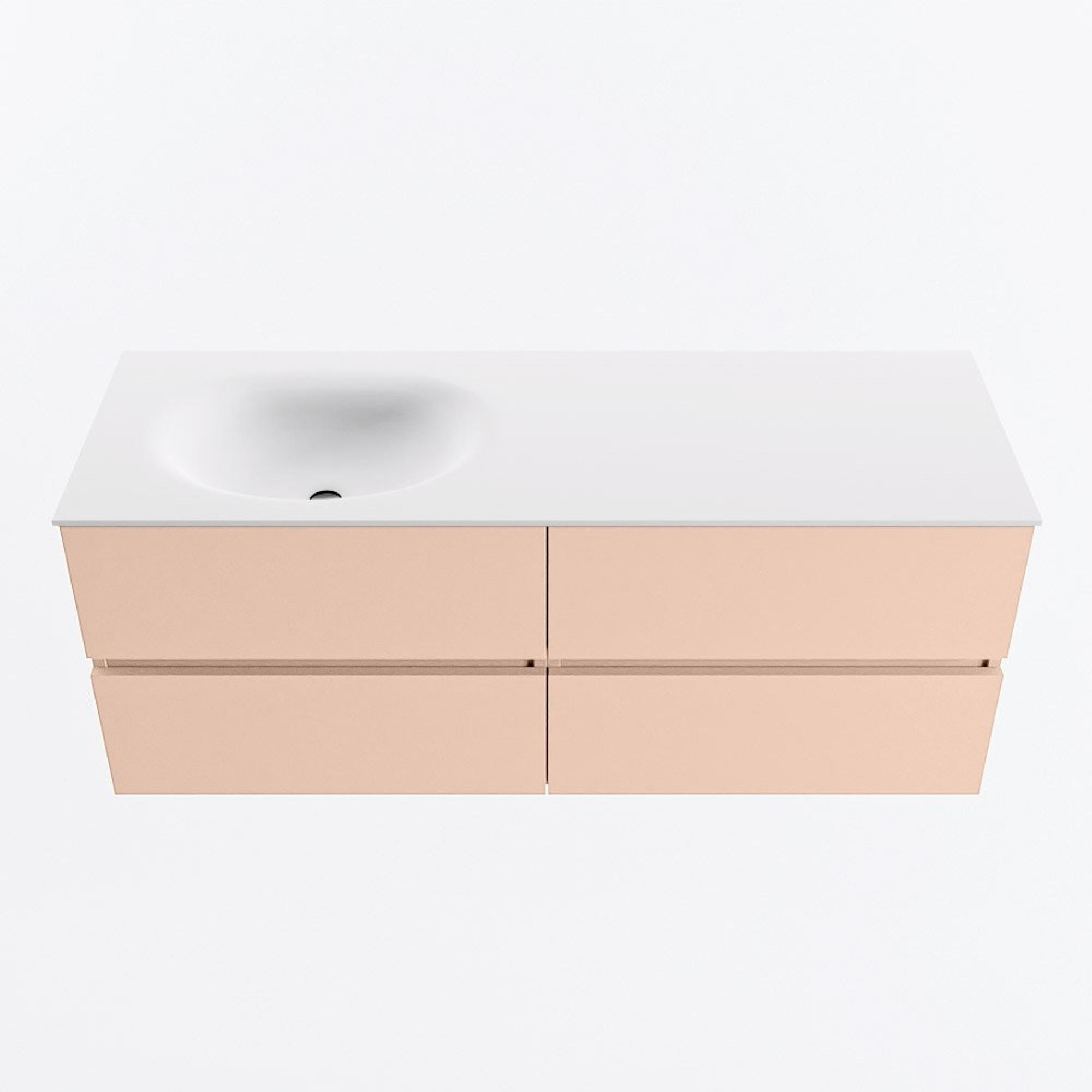 MONDIAZ VICA Badkamermeubelset - 130cm - onderkast rosee - 4 lades - wastafel moon links - 1 kraangat - 60cm hoge versie - talc