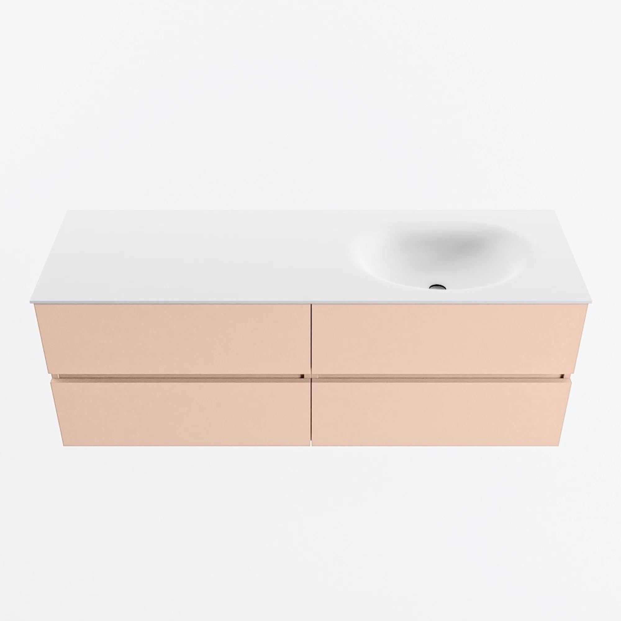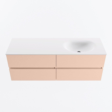 MONDIAZ VICA Badkamermeubelset - 140cm - onderkast rosee - 4 lades - wastafel moon rechts - zonder kraangaten - 60cm hoge versie - talc