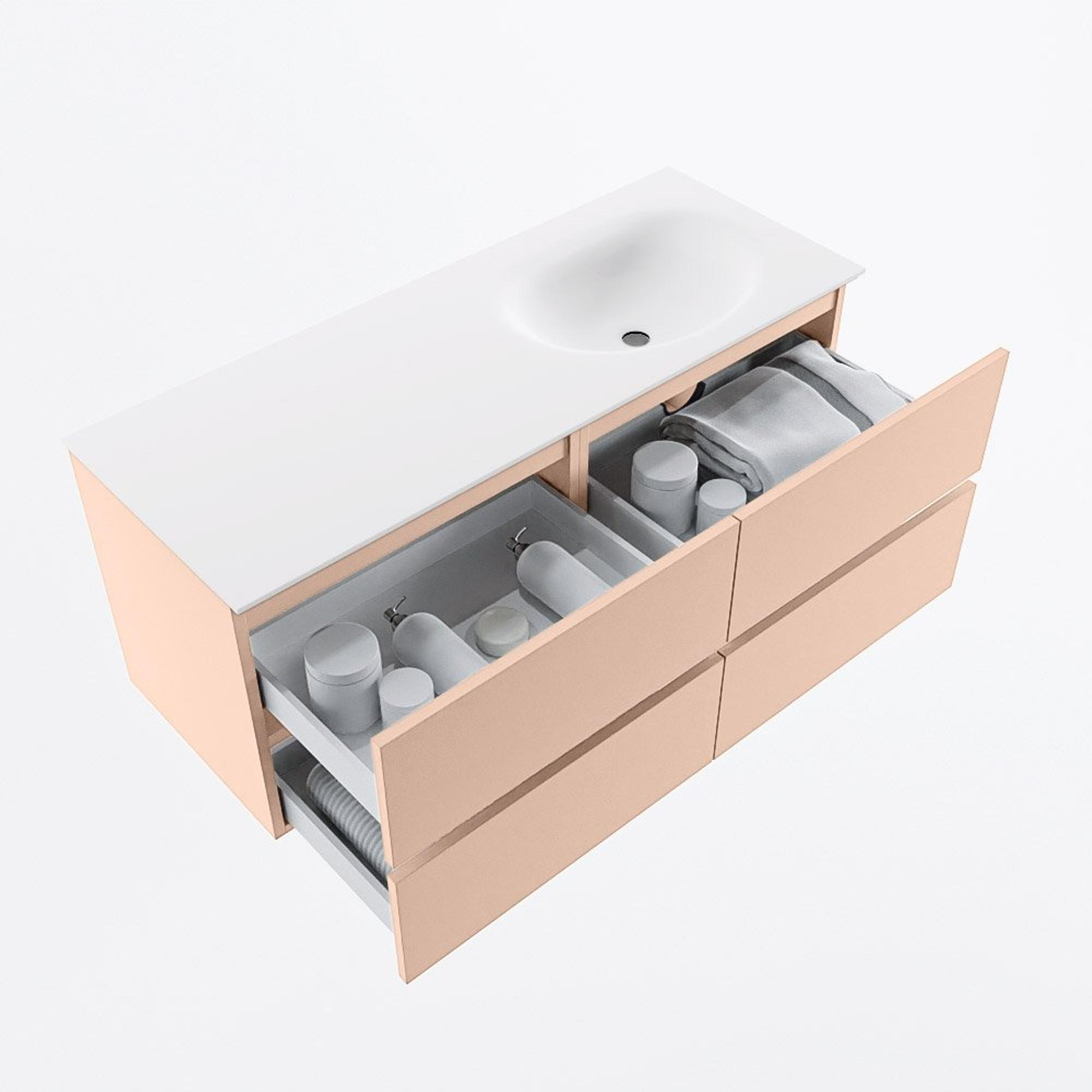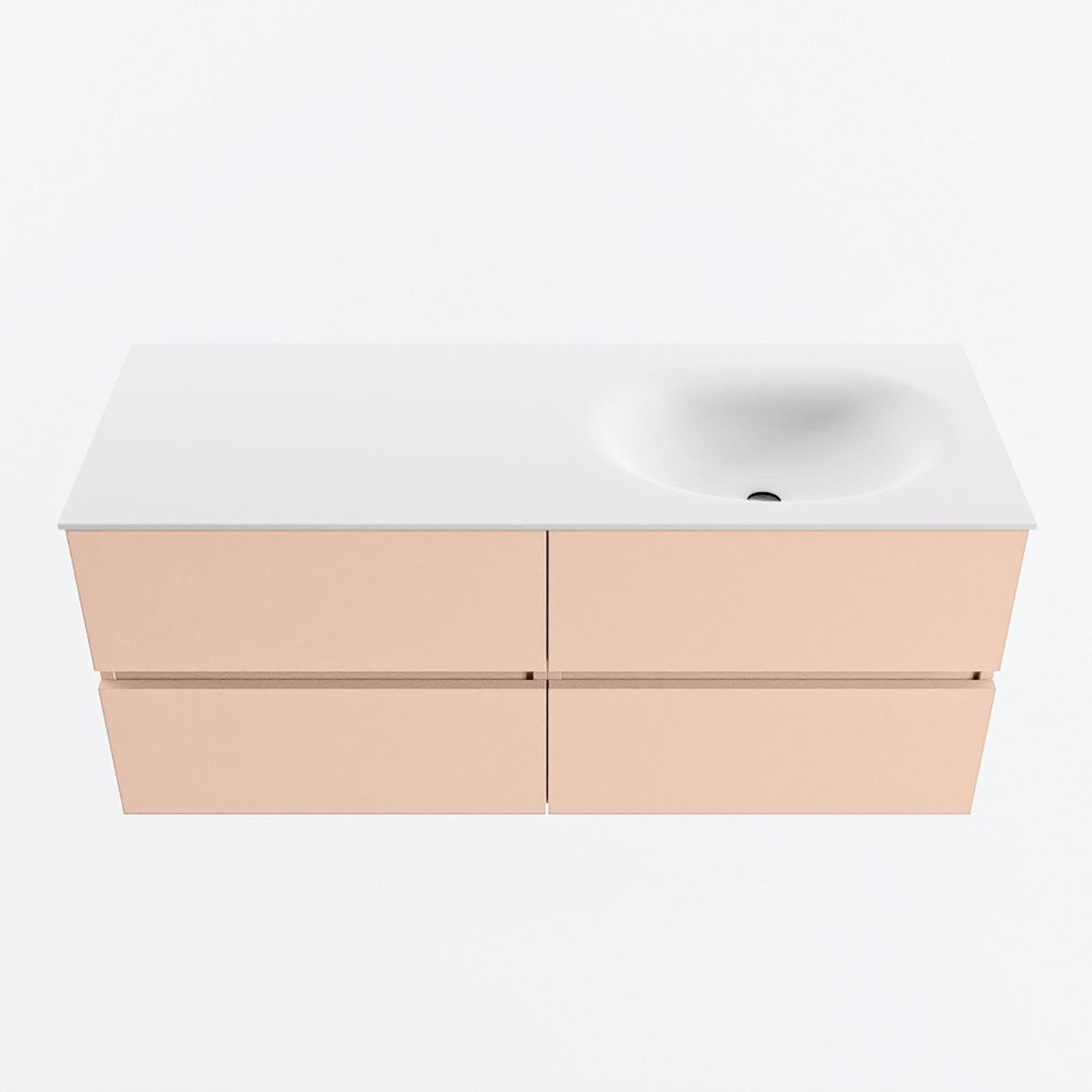 MONDIAZ VICA Badkamermeubelset - 120cm - onderkast rosee - 4 lades - wastafel moon rechts - zonder kraangaten - 60cm hoge versie - talc