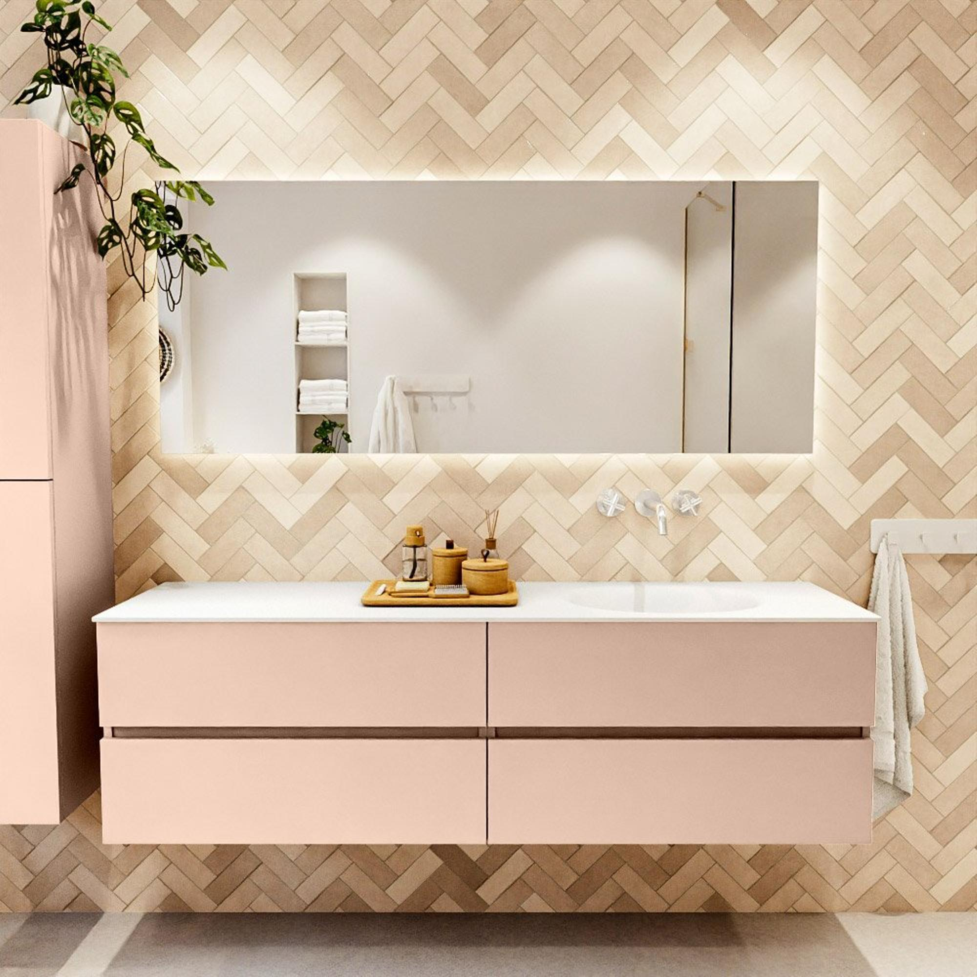 MONDIAZ Vica Badkamermeubelset - 170cm - onderkast rosee - 4 lades - wastafel moon rechts - zonder kraangaten - 60cm hoge versie - talc