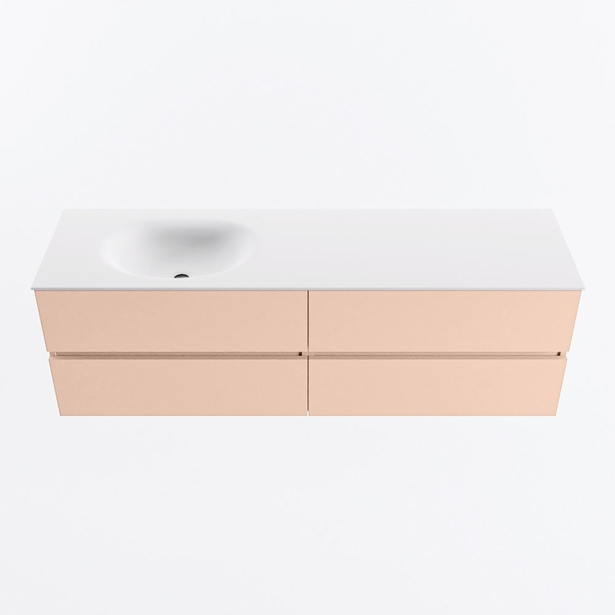 MONDIAZ Vica Badkamermeubelset - 160cm - onderkast rosee - 4 lades - wastafel moon links - zonder kraangaten - 60cm hoge versie - talc