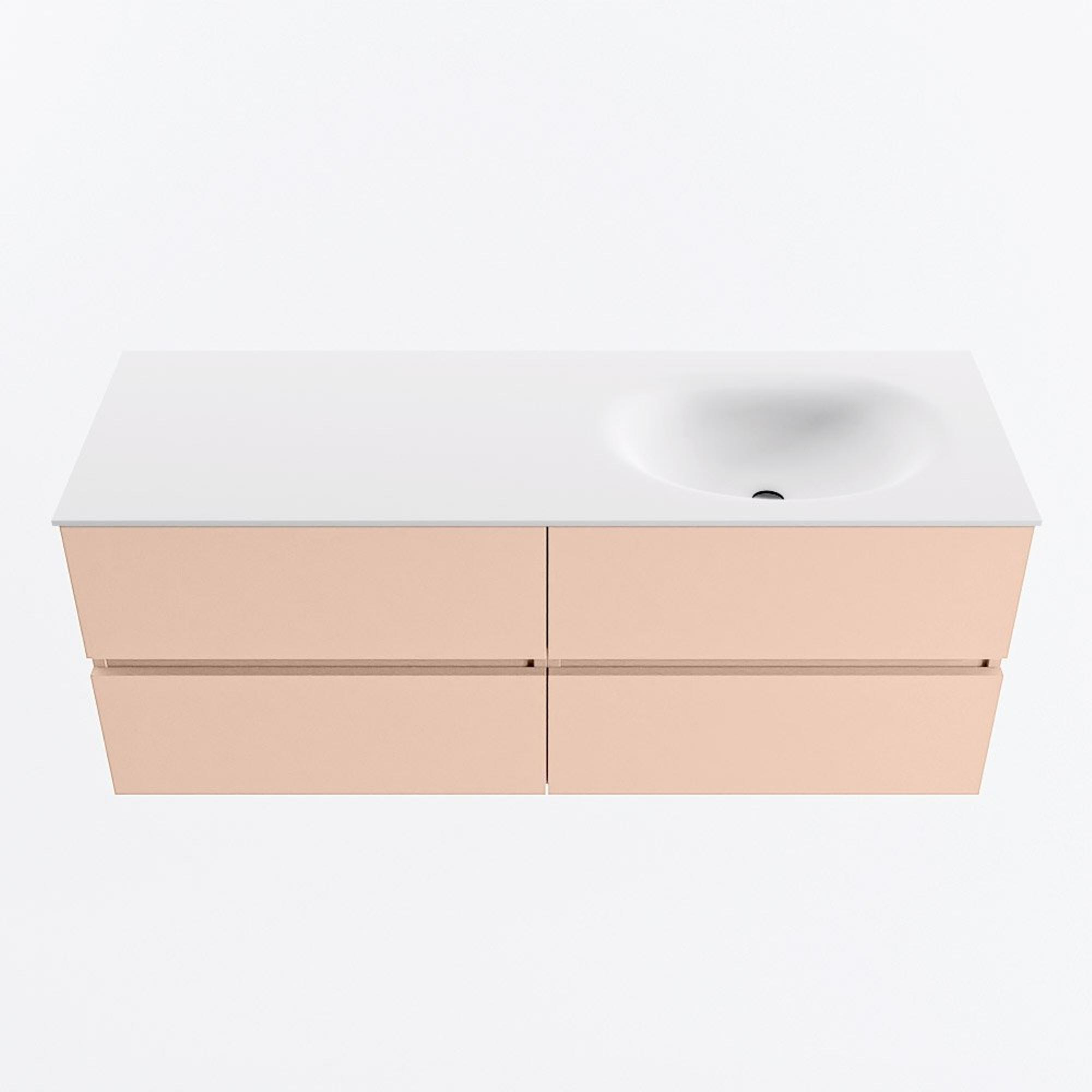 MONDIAZ VICA Badkamermeubelset - 130cm - onderkast rosee - 4 lades - wastafel moon rechts - 1 kraangat - 60cm hoge versie - talc