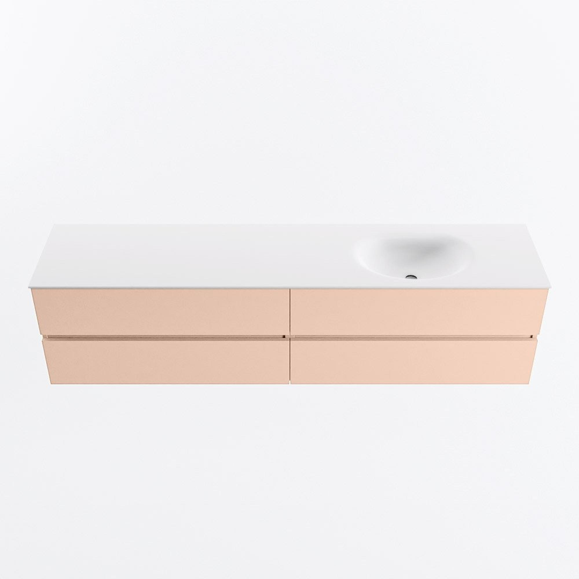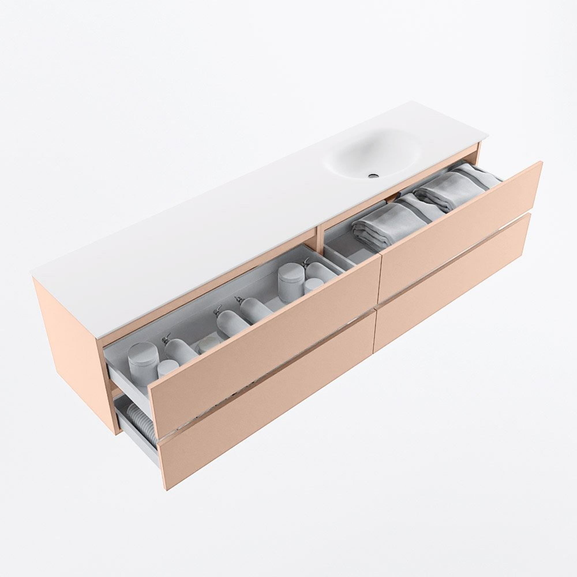MONDIAZ VICA Badkamermeubelset - 200cm - onderkast rosee - 4 lades - wastafel moon rechts - 1 kraangat - 60cm hoge versie - talc
