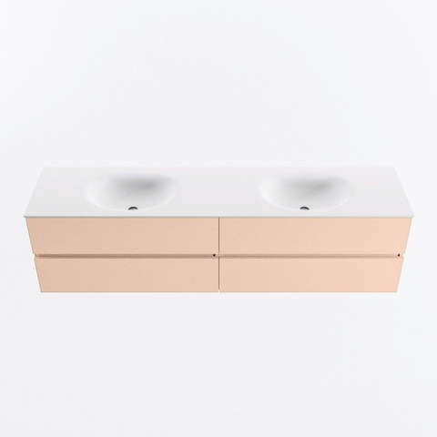 MONDIAZ Vica Badkamermeubelset - 190cm - onderkast rosee - 4 lades - wastafel moon dubbel - zonder kraangaten - 60cm hoge versie - talc