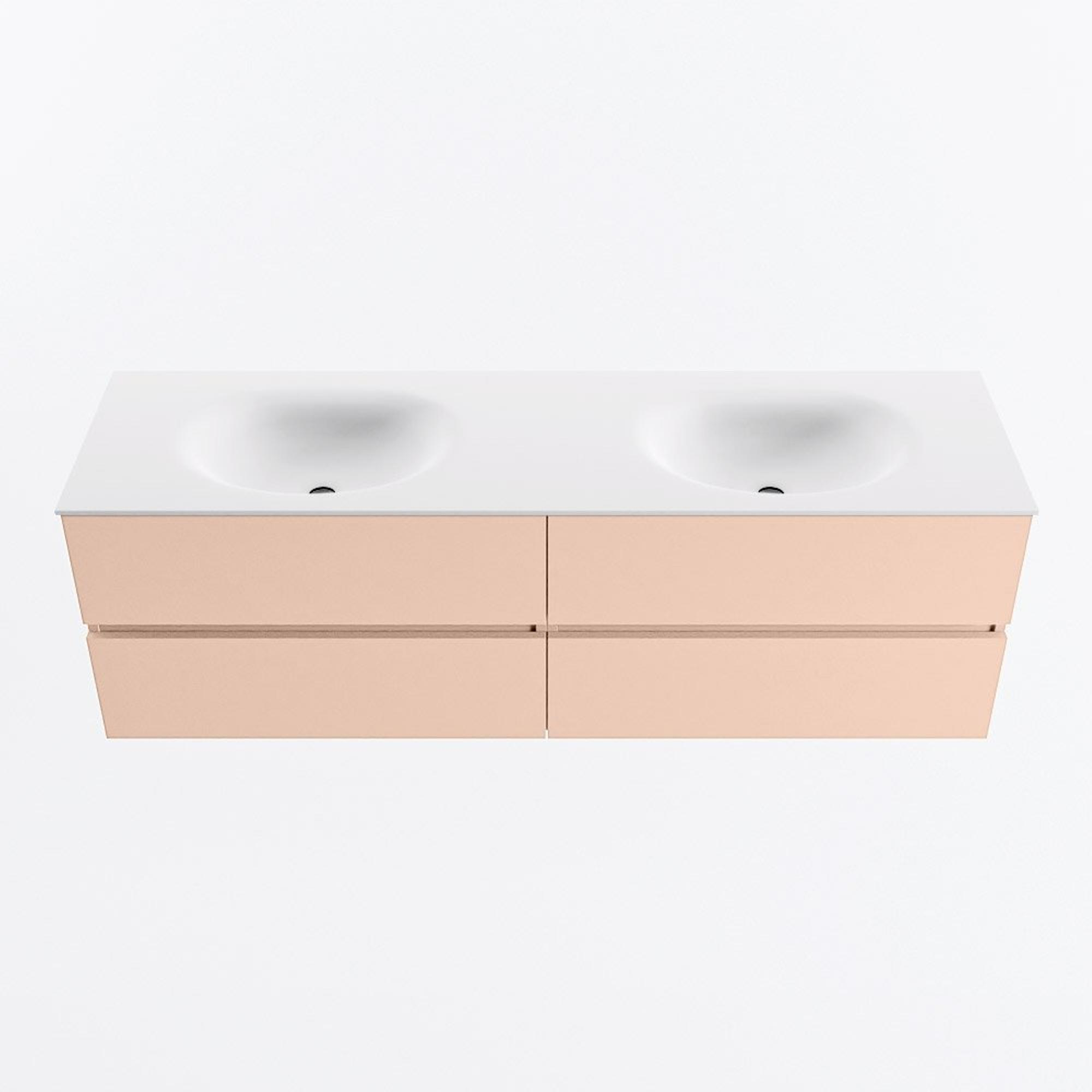 MONDIAZ Vica Badkamermeubelset - 160cm - onderkast rosee - 4 lades - wastafel moon dubbel - zonder kraangaten - 60cm hoge versie - talc