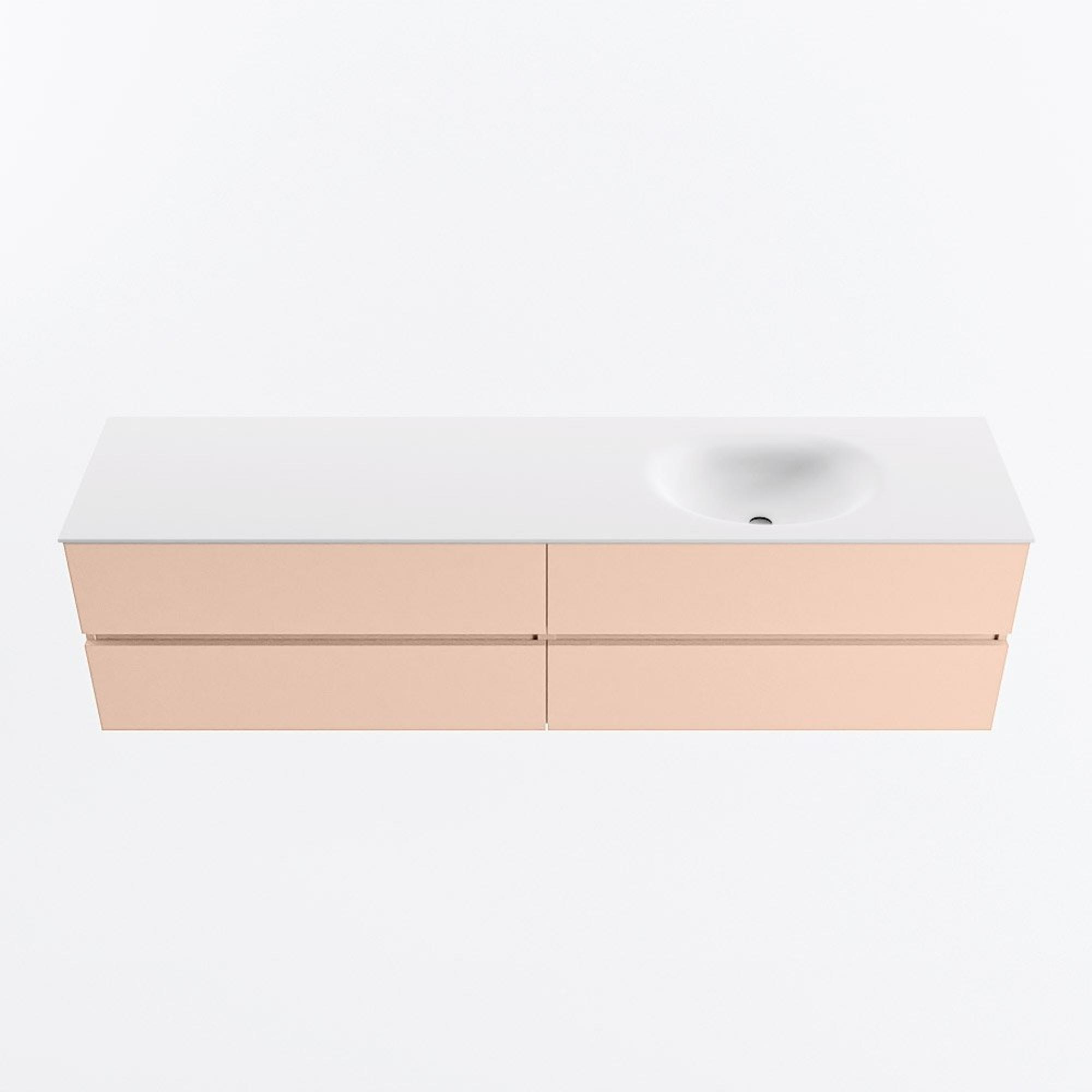 MONDIAZ Vica Badkamermeubelset - 190cm - onderkast rosee - 4 lades - wastafel moon rechts - 1 kraangat - 60cm hoge versie - talc