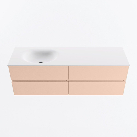 MONDIAZ VICA Badkamermeubelset - 150cm - onderkast rosee - 4 lades - wastafel moon links - 1 kraangat - 60cm hoge versie - talc