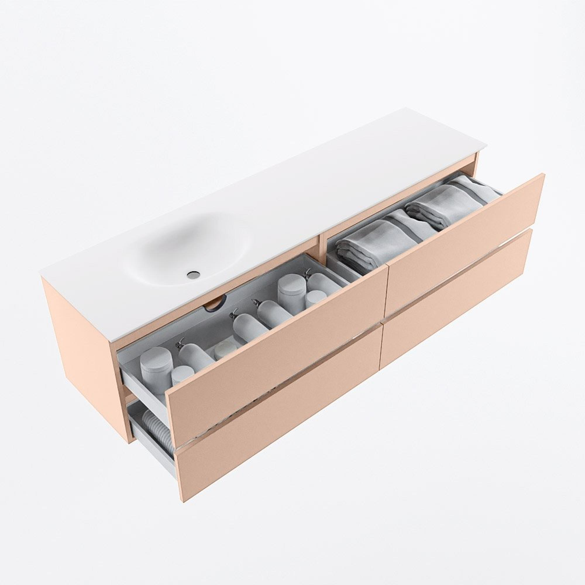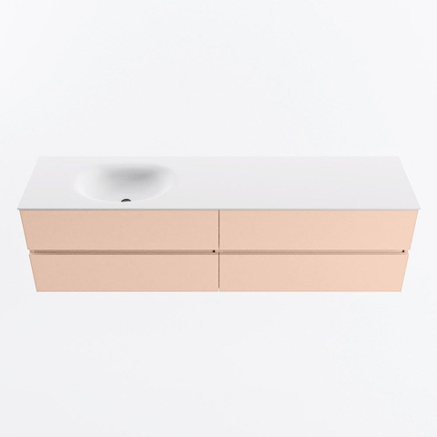 MONDIAZ Vica Badkamermeubelset - 180cm - onderkast rosee - 4 lades - wastafel moon links - 1 kraangat - 60cm hoge versie - talc