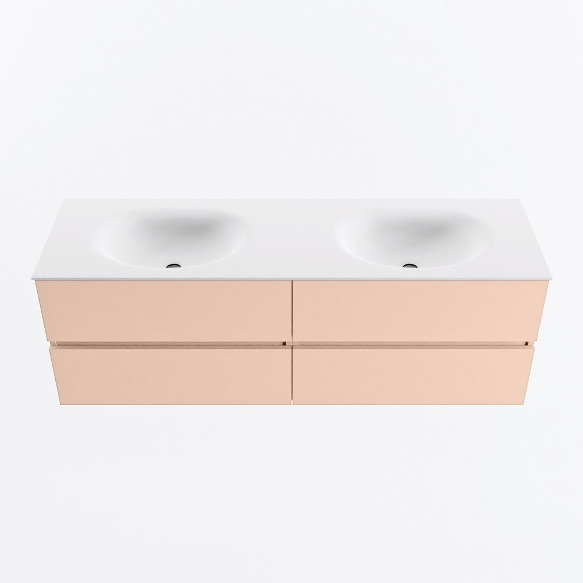 MONDIAZ VICA Badkamermeubelset - 150cm - onderkast rosee - 4 lades - wastafel moon dubbel - zonder kraangaten - 60cm hoge versie - talc