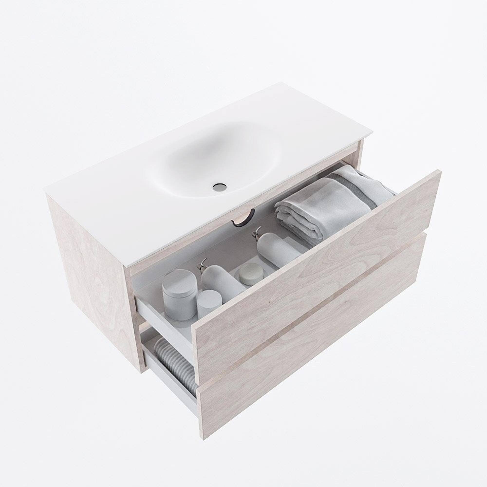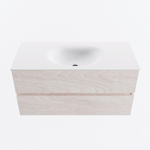 MONDIAZ VICA Badkamermeubelset - 100cm - onderkast underlayment- 2 lades - wastafel moon midden - 1 kraangat - 60cm hoge versie - talc