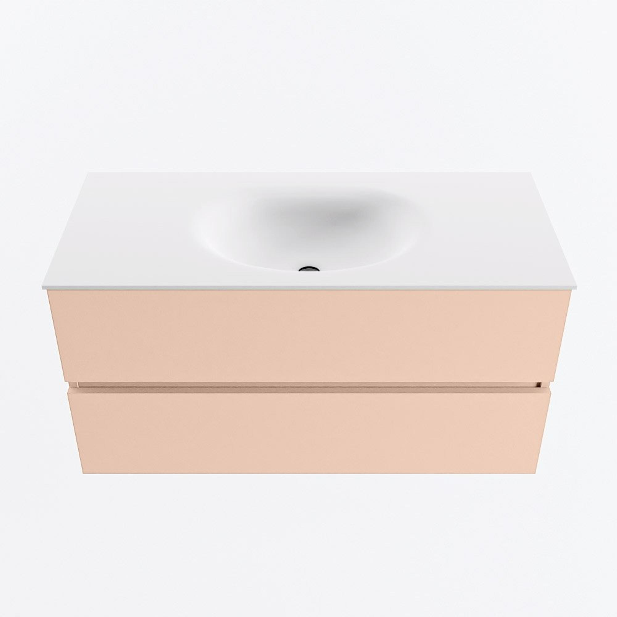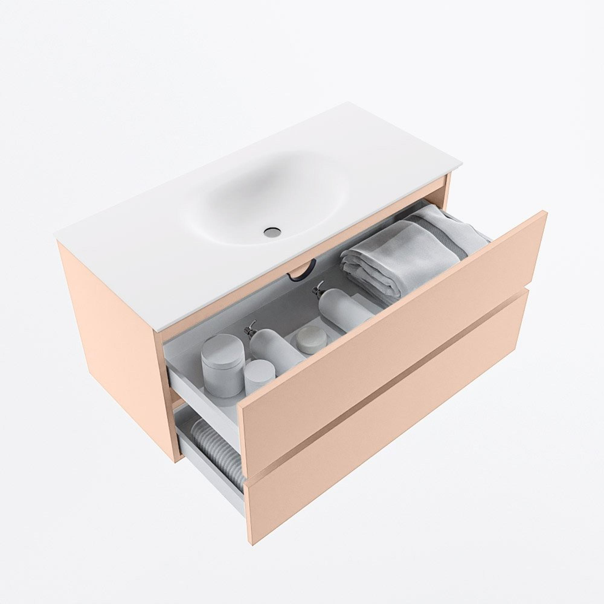 MONDIAZ VICA Badkamermeubelset - 100cm - onderkast rosee- 2 lades - wastafel moon midden - zonder kraangaten - 60cm hoge versie - talc