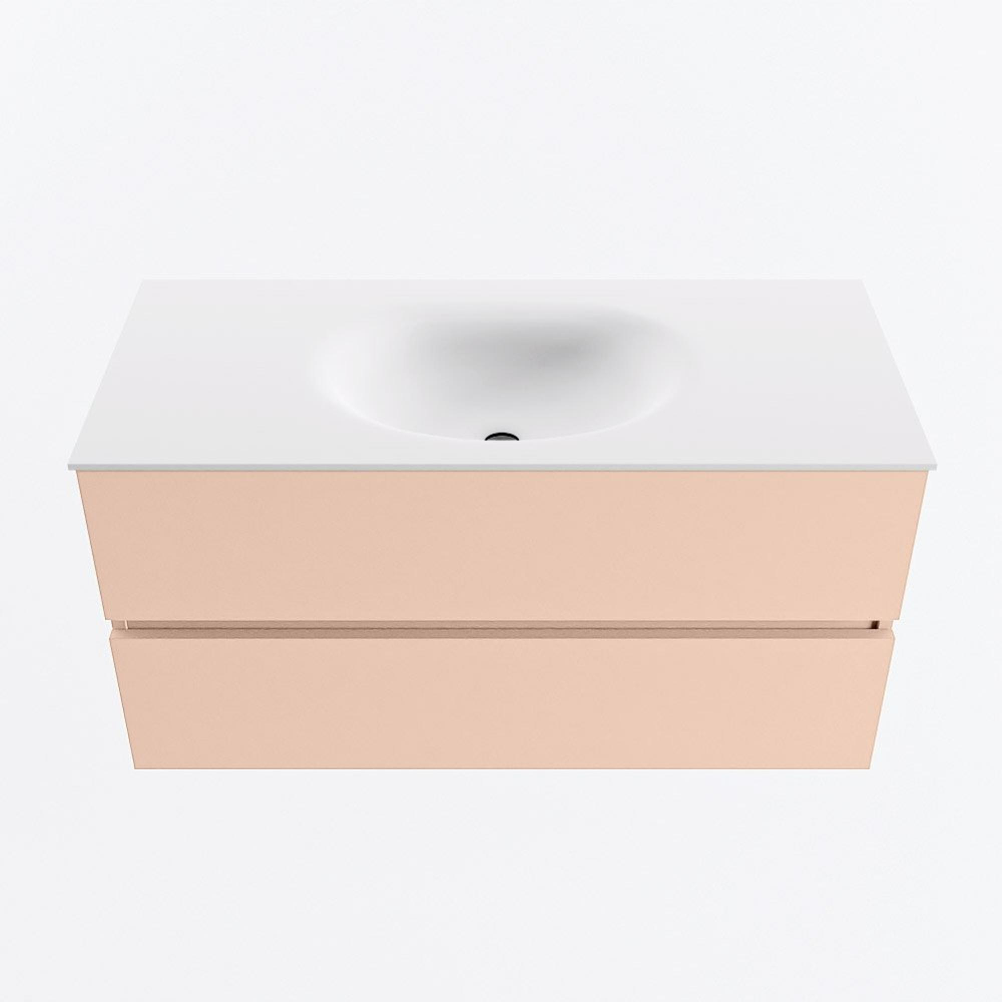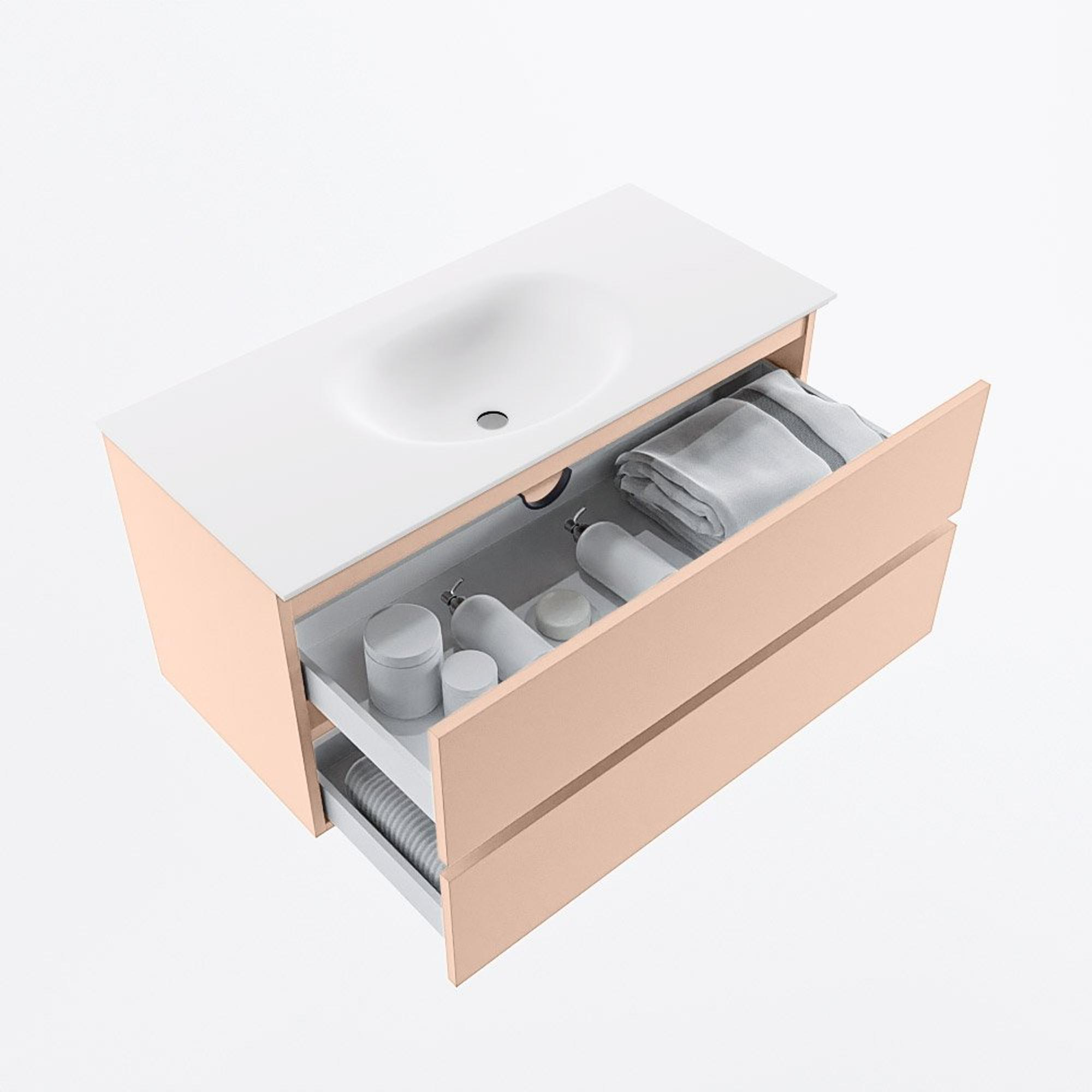 MONDIAZ VICA Badkamermeubelset - 100cm - onderkast rosee- 2 lades - wastafel moon midden - 1 kraangat - 60cm hoge versie - talc