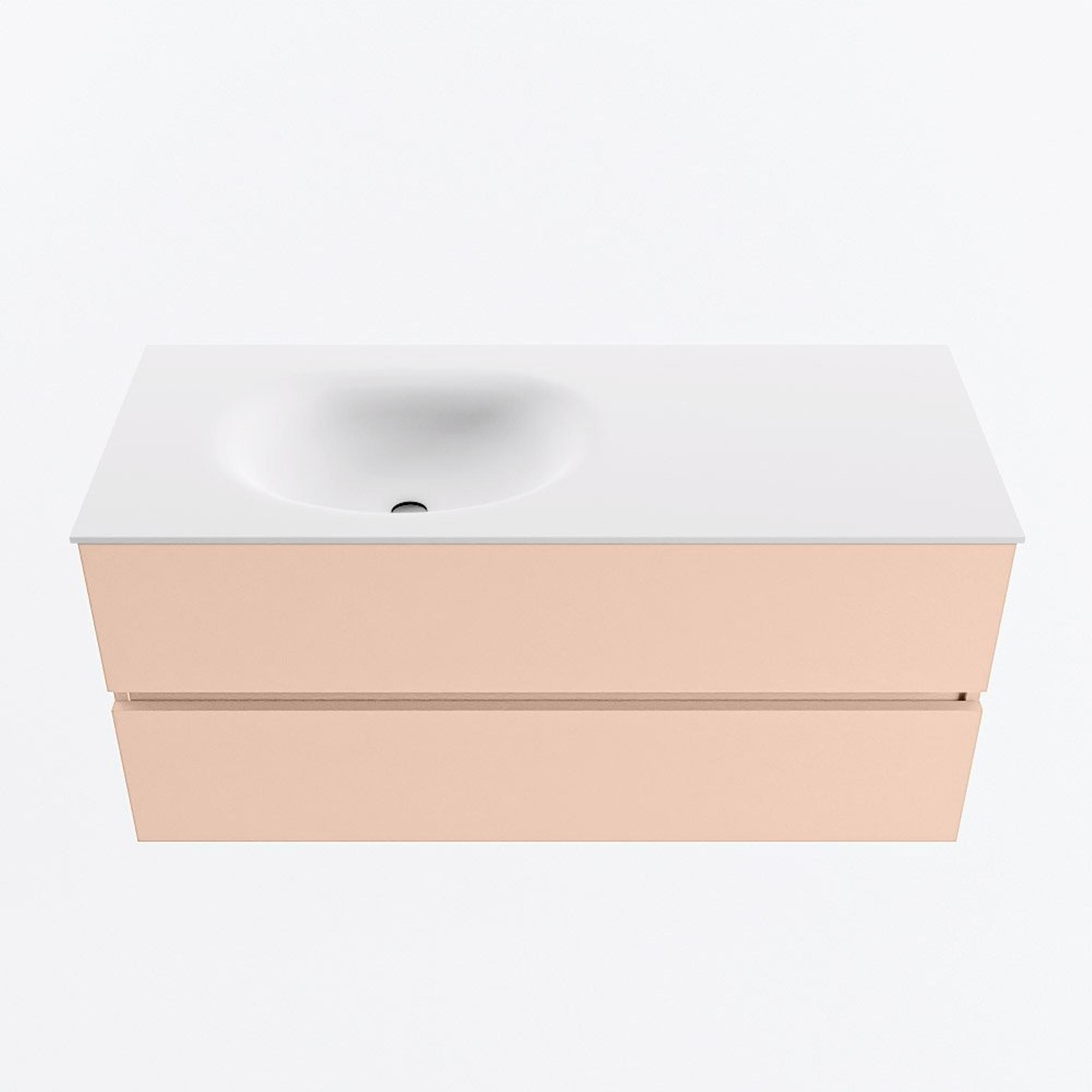 MONDIAZ VICA Badkamermeubelset - 110cm - onderkast rosee- 2 lades - wastafel moon links - zonder kraangaten - 60cm hoge versie - talc