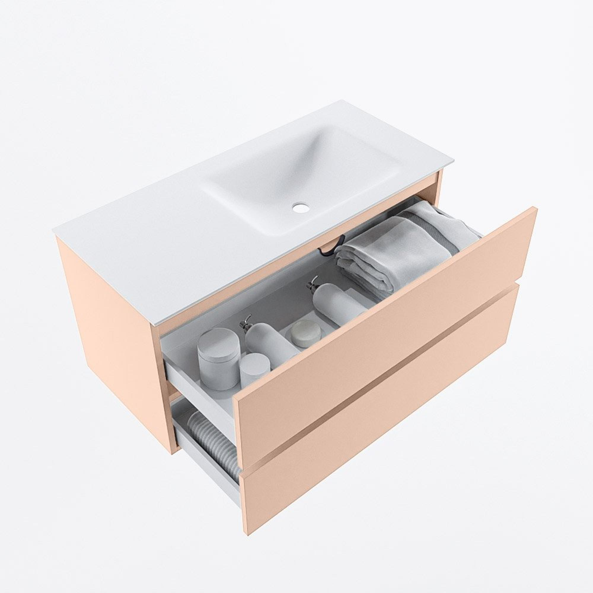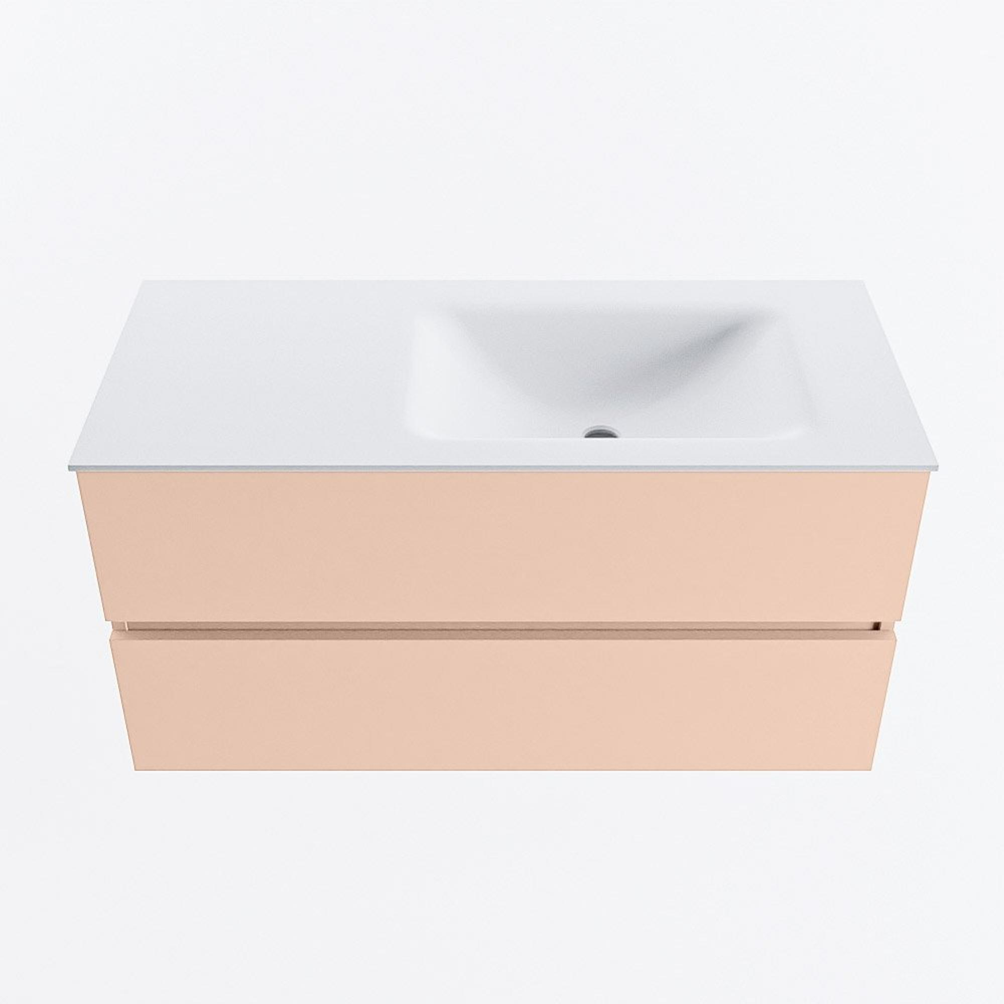 MONDIAZ VICA Badkamermeubelset - 100cm - onderkast rosee- 2 lades - wastafel cloud rechts - zonder kraangaten - 60cm hoge versie - talc