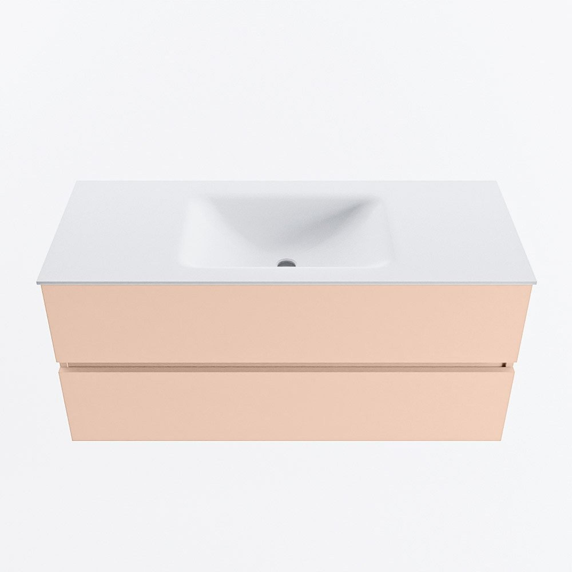 MONDIAZ VICA Badkamermeubelset - 110cm - onderkast rosee- 2 lades - wastafel cloud midden - zonder kraangaten - 60cm hoge versie - talc