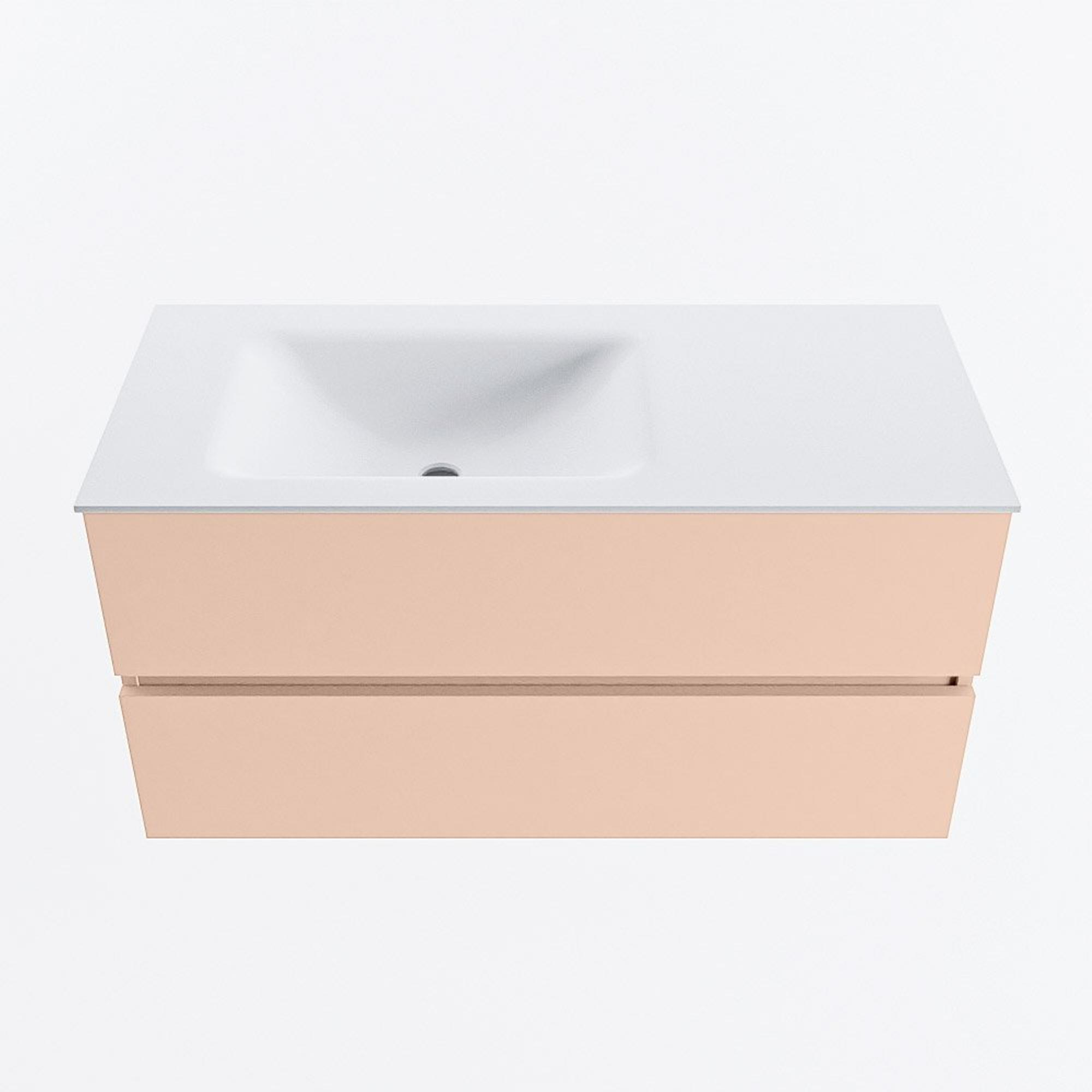 MONDIAZ VICA Badkamermeubelset - 100cm - onderkast rosee- 2 lades - wastafel cloud links - 1 kraangat - 60cm hoge versie - talc