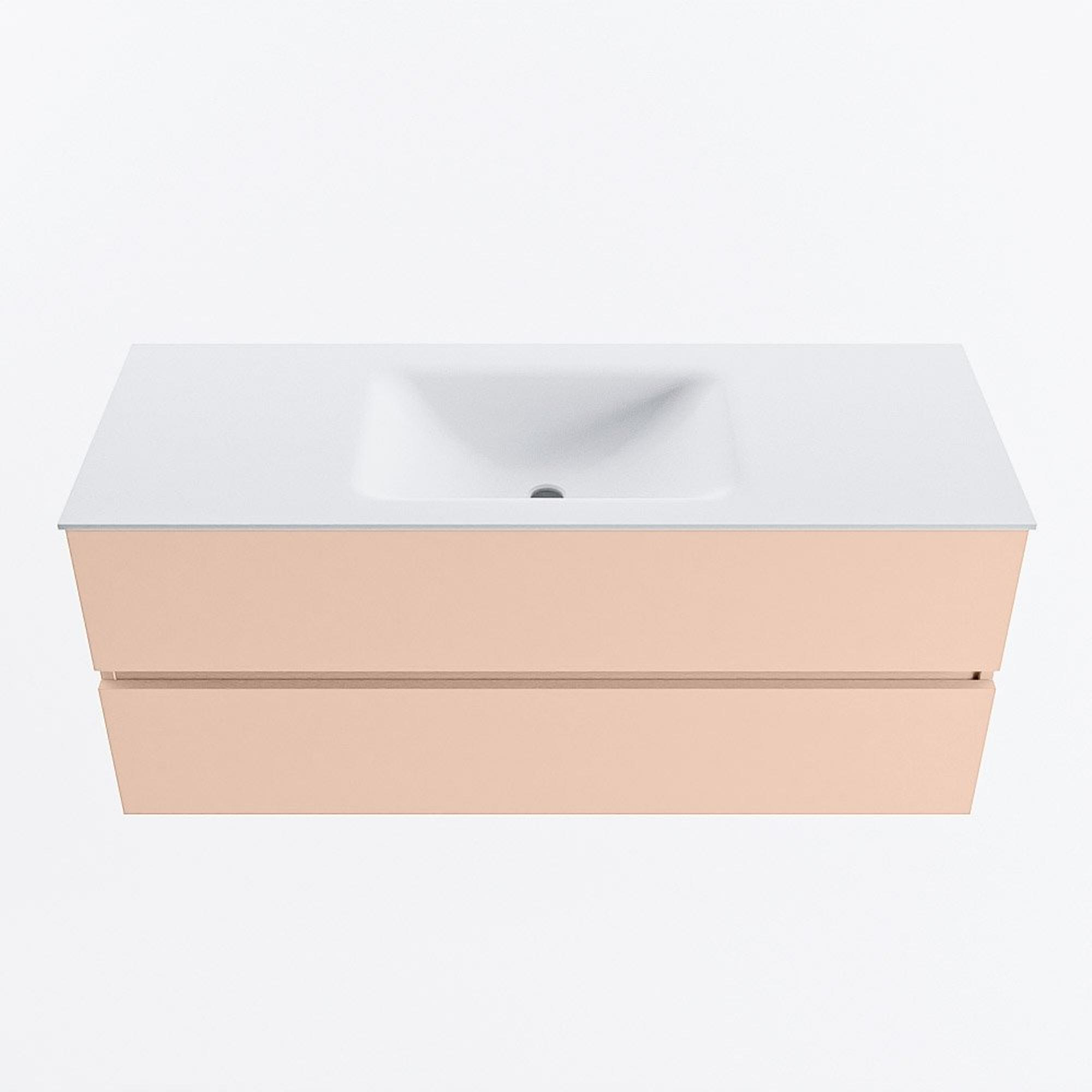 MONDIAZ VICA Badkamermeubelset - 120cm - onderkast rosee- 2 lades - wastafel cloud midden - zonder kraangaten - 60cm hoge versie - talc