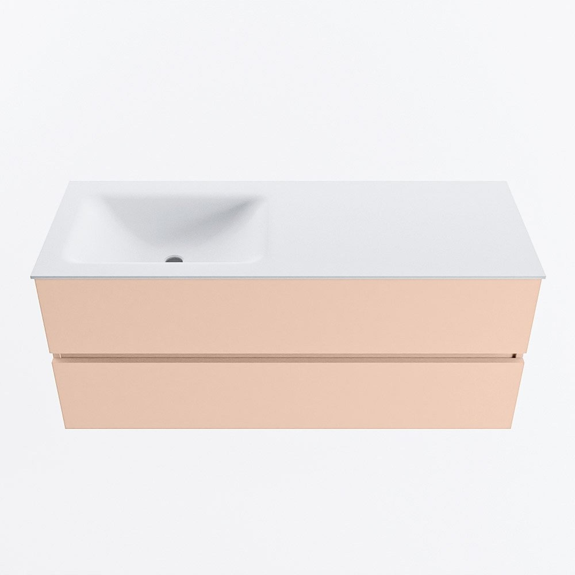 MONDIAZ VICA Badkamermeubelset - 120cm - onderkast rosee- 2 lades - wastafel cloud links - 1 kraangat - 60cm hoge versie - talc