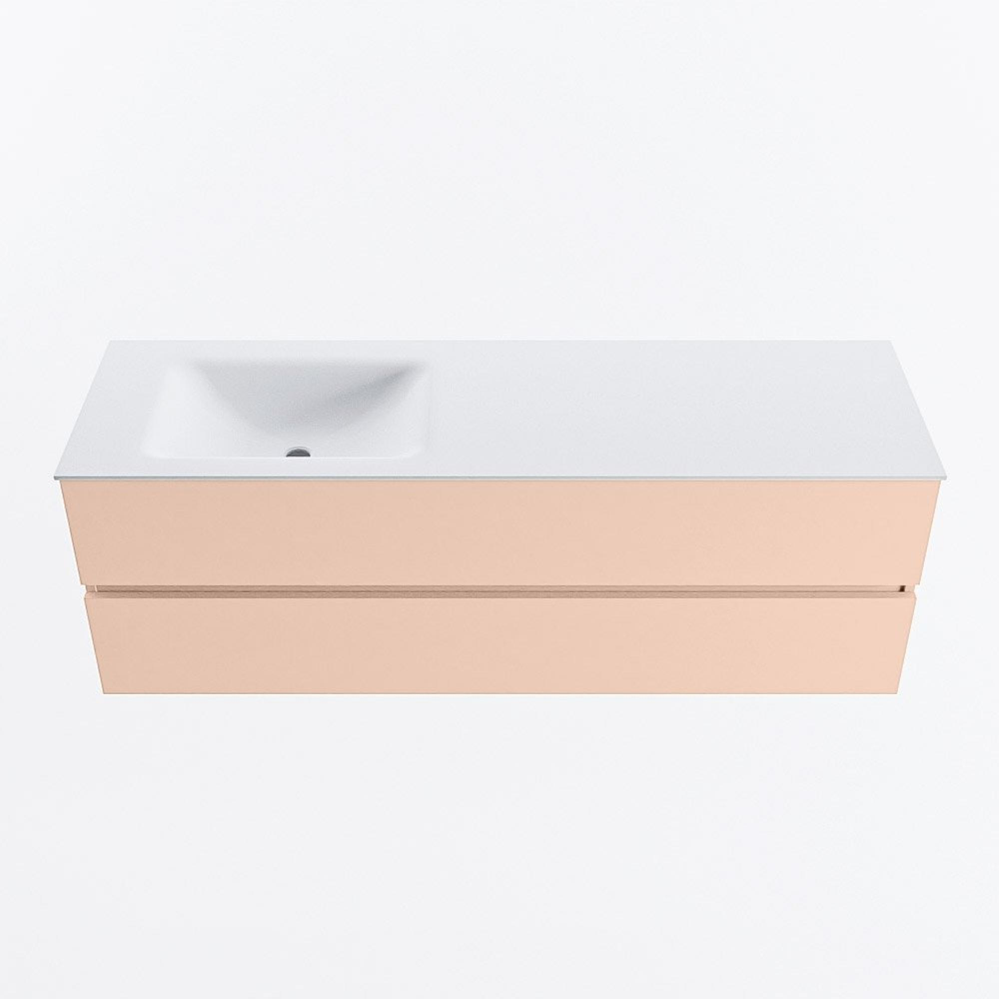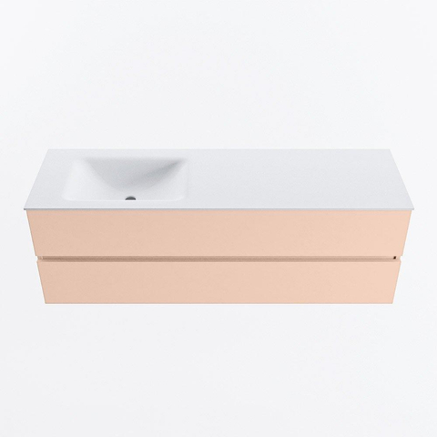 MONDIAZ VICA Badkamermeubelset - 150cm - onderkast rosee- 2 lades - wastafel cloud links - zonder kraangaten - 60cm hoge versie - talc