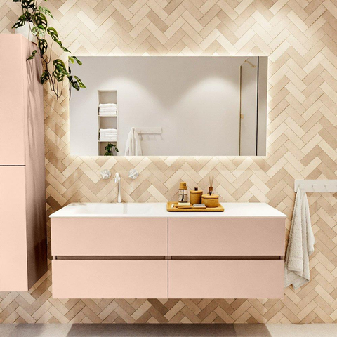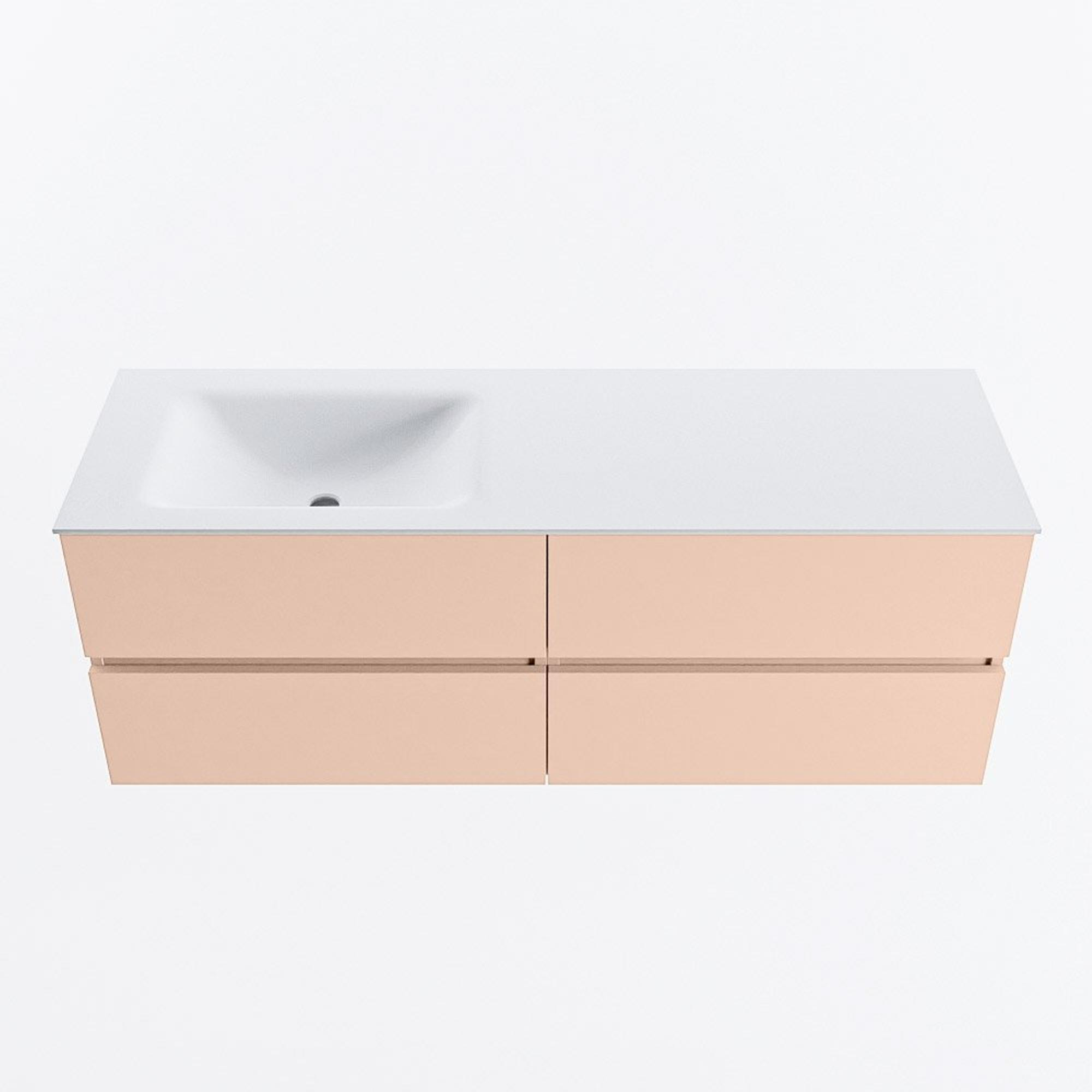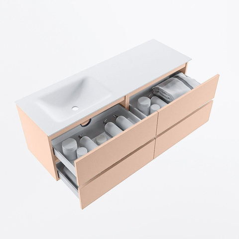 MONDIAZ VICA Badkamermeubelset - 140cm - onderkast rosee - 4 lades - wastafel cloud links - 1 kraangat - 60cm hoge versie - talc