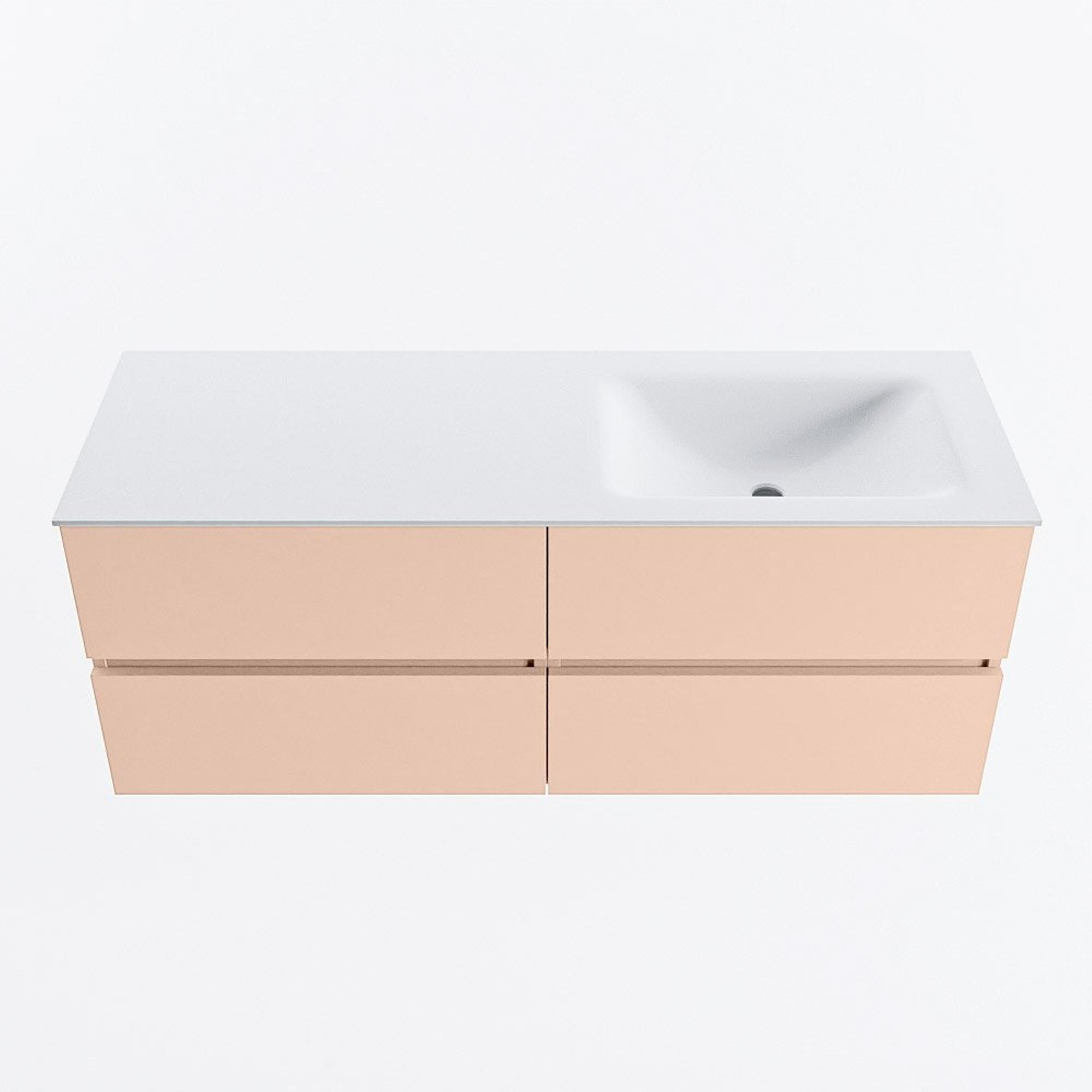 MONDIAZ VICA Badkamermeubelset - 130cm - onderkast rosee - 4 lades - wastafel cloud rechts - 1 kraangat - 60cm hoge versie - talc