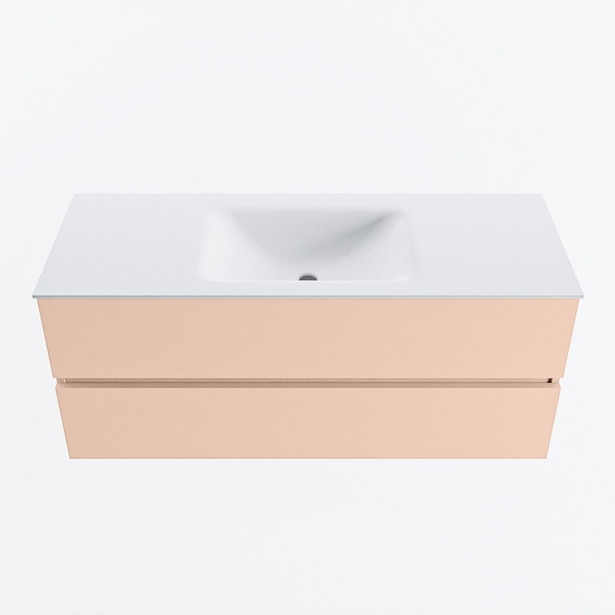 MONDIAZ VICA Badkamermeubelset - 120cm - onderkast rosee- 2 lades - wastafel cloud midden - 1 kraangat - 60cm hoge versie - talc
