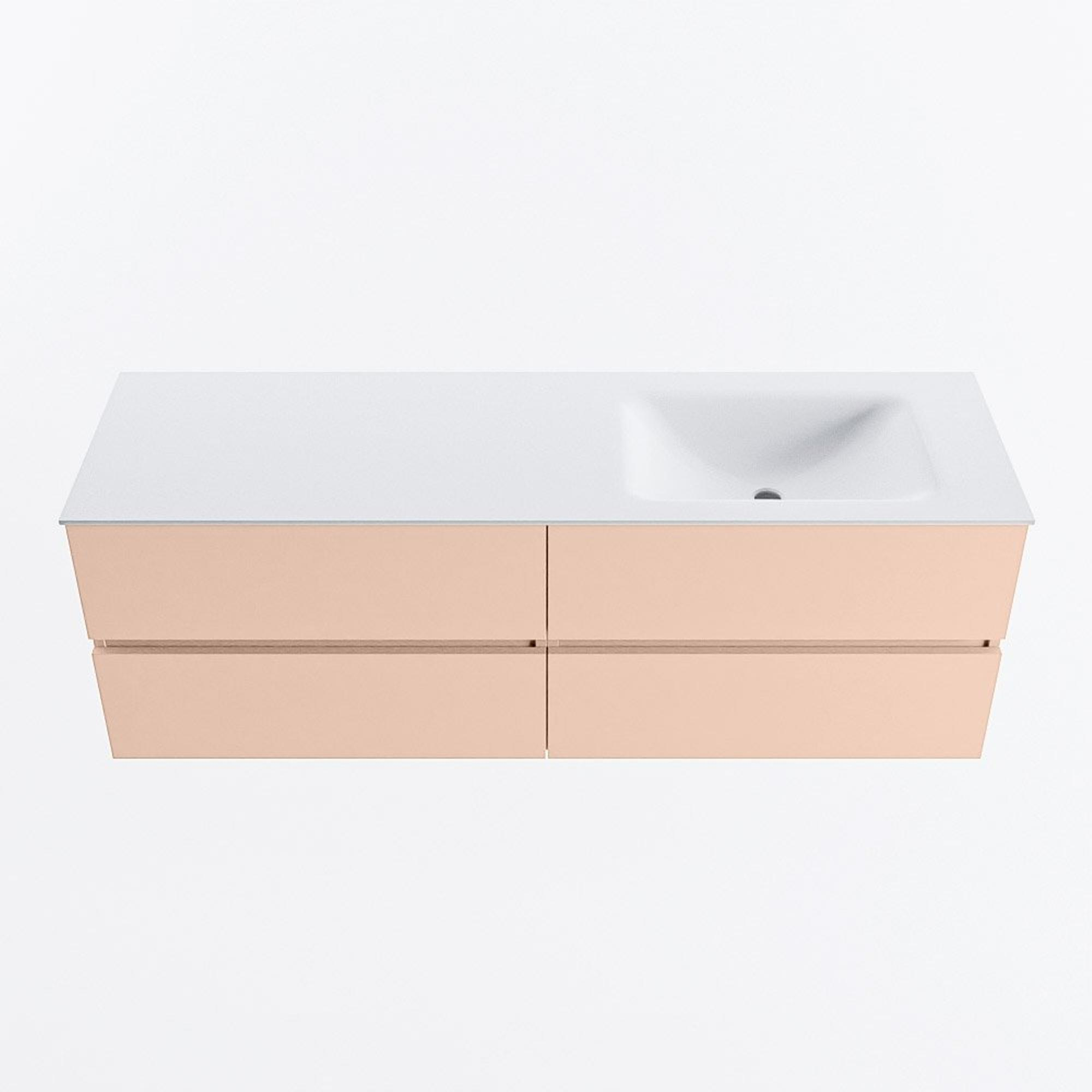 MONDIAZ VICA Badkamermeubelset - 150cm - onderkast rosee - 4 lades - wastafel cloud rechts - zonder kraangaten - 60cm hoge versie - talc
