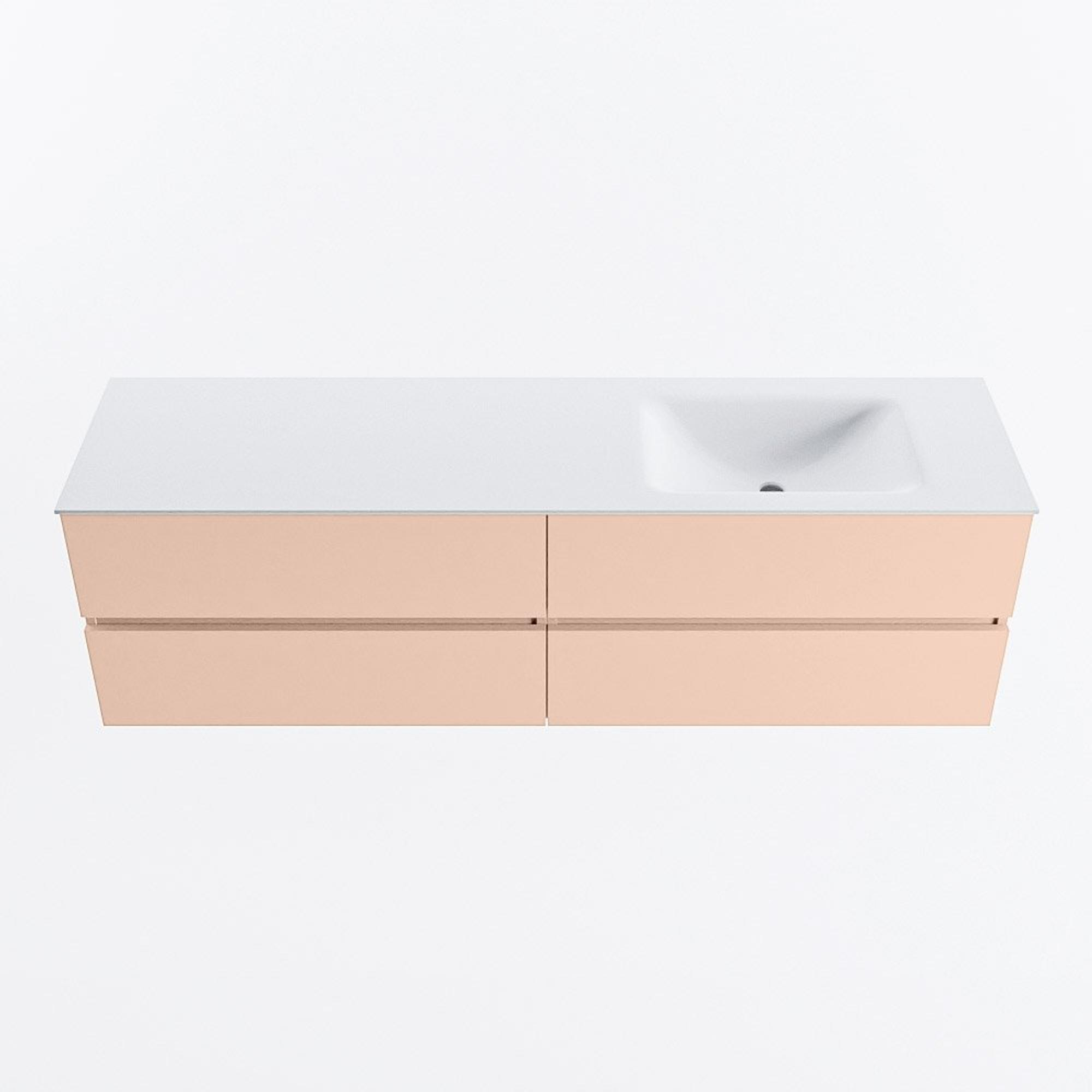 MONDIAZ Vica Badkamermeubelset - 170cm - onderkast rosee - 4 lades - wastafel cloud rechts - 1 kraangat - 60cm hoge versie - talc