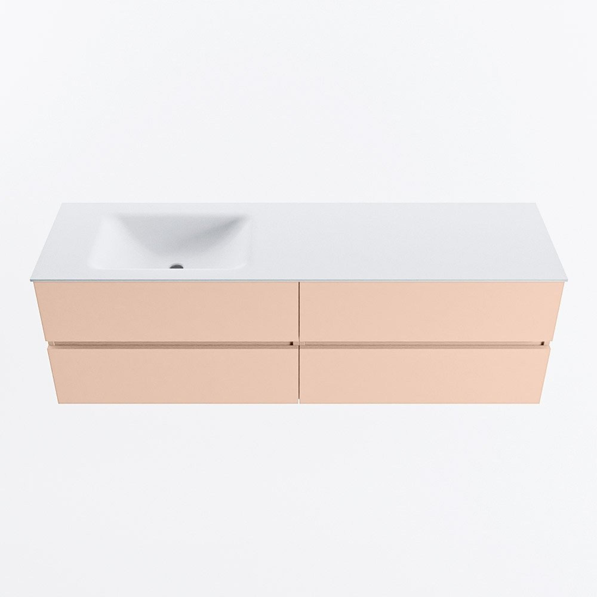 MONDIAZ Vica Badkamermeubelset - 160cm - onderkast rosee - 4 lades - wastafel cloud links - 1 kraangat - 60cm hoge versie - talc