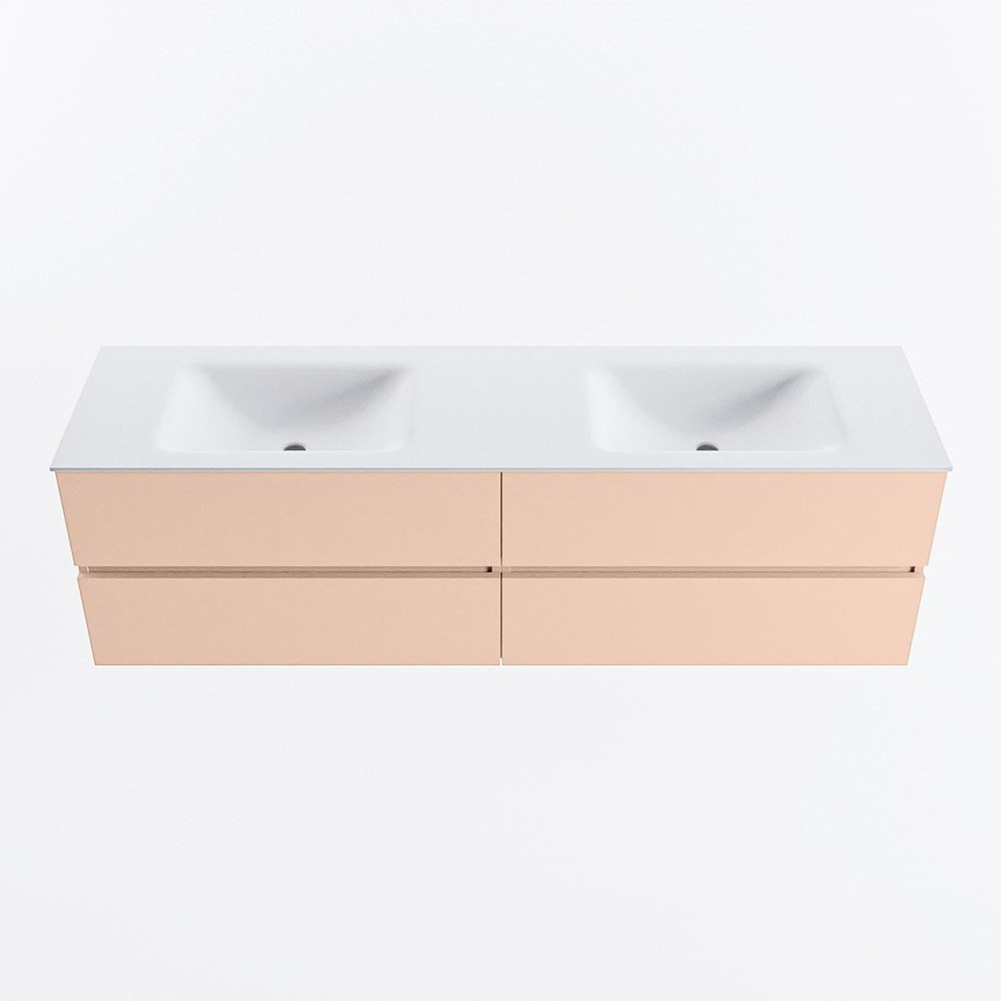 MONDIAZ Vica Badkamermeubelset - 170cm - onderkast rosee - 4 lades - wastafel cloud dubbel - zonder kraangaten - 60cm hoge versie - talc