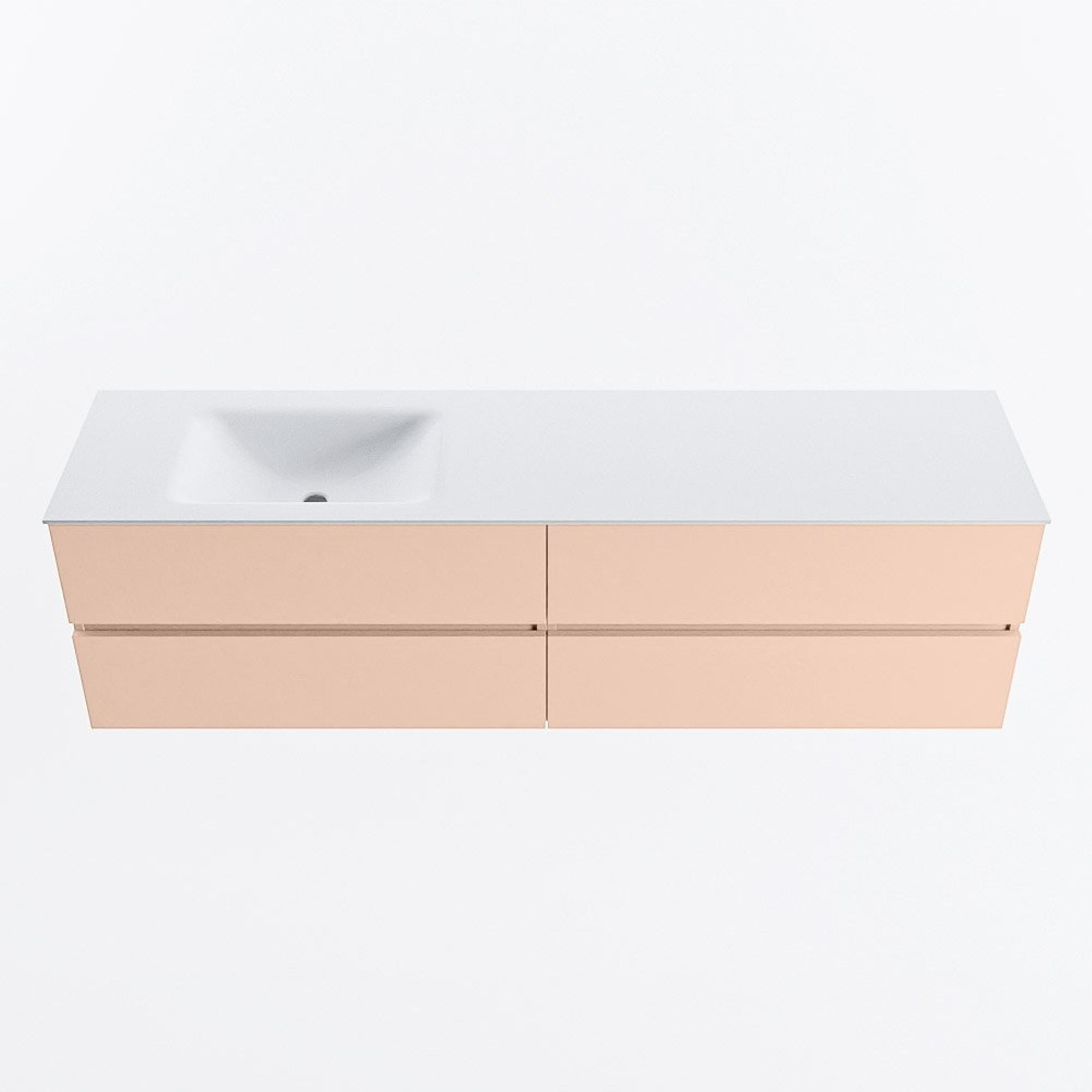 MONDIAZ Vica Badkamermeubelset - 180cm - onderkast rosee - 4 lades - wastafel cloud links - zonder kraangaten - 60cm hoge versie - talc