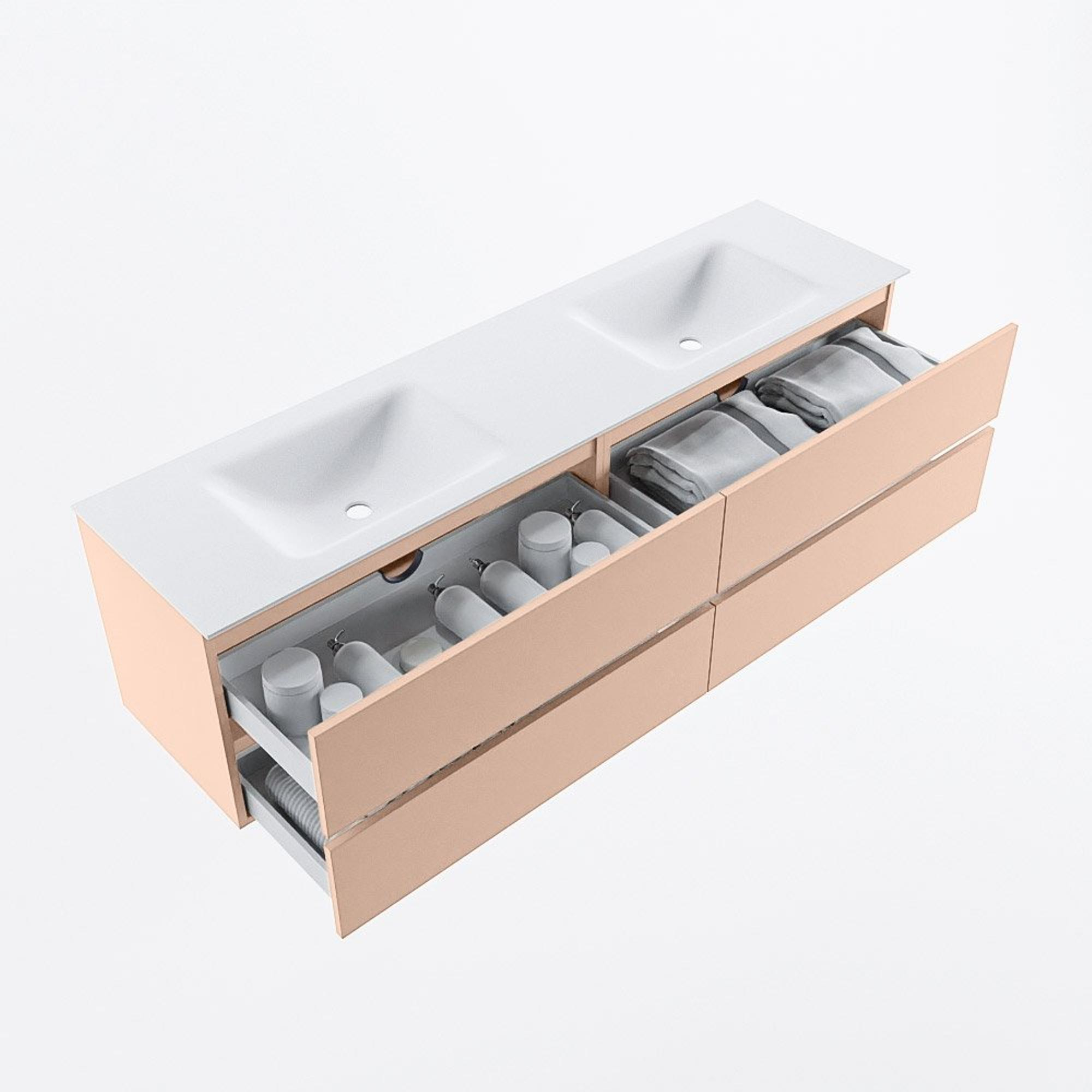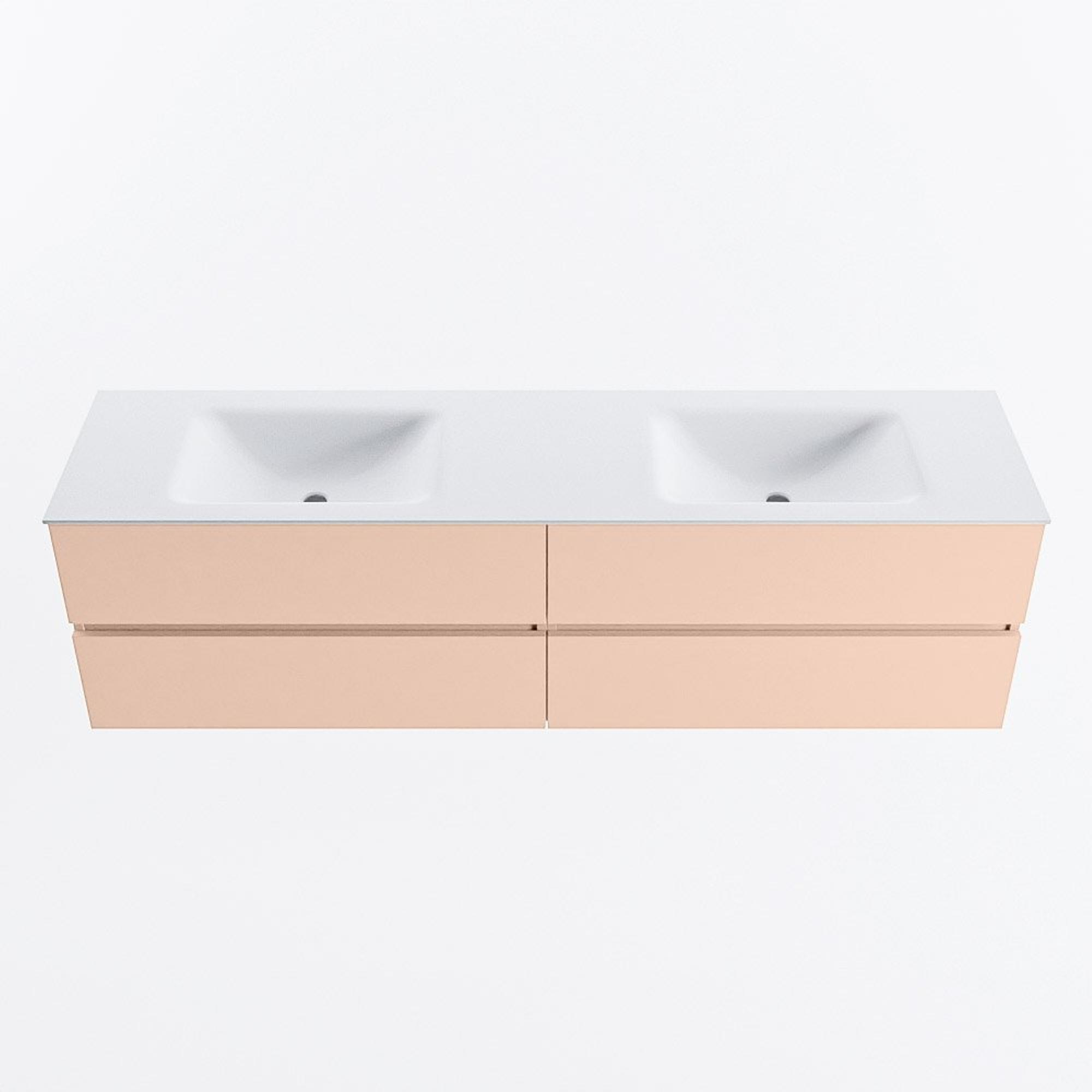 MONDIAZ Vica Badkamermeubelset - 180cm - onderkast rosee - 4 lades - wastafel cloud dubbel - zonder kraangaten - 60cm hoge versie - talc