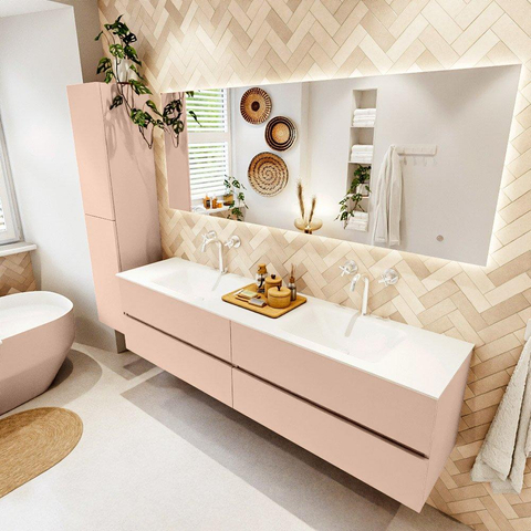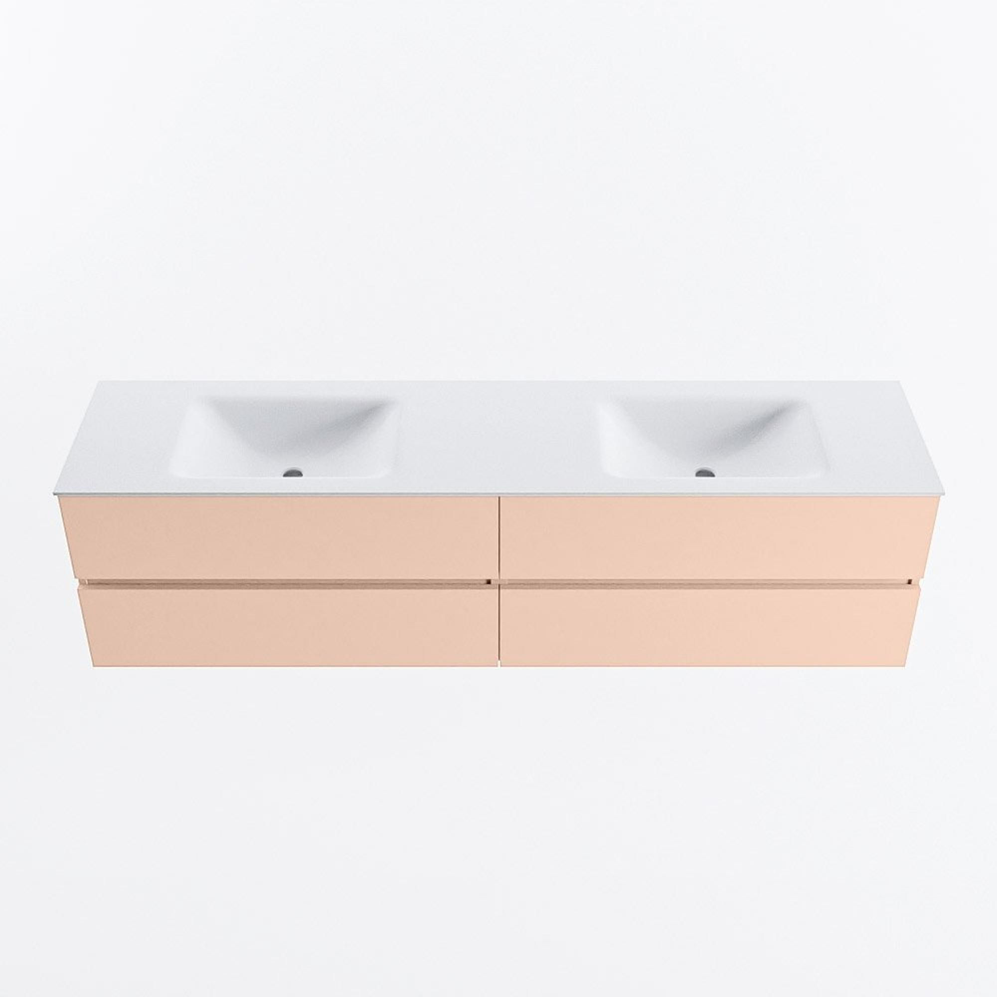 MONDIAZ Vica Badkamermeubelset - 190cm - onderkast rosee - 4 lades - wastafel cloud dubbel - 2 kraangaten - 60cm hoge versie - talc