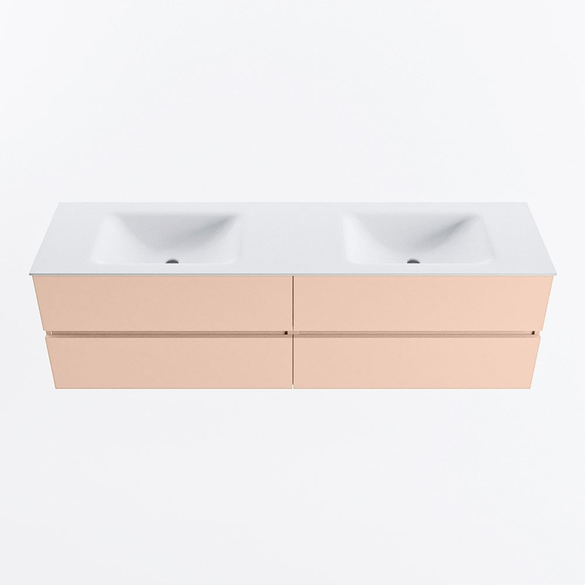 MONDIAZ Vica Badkamermeubelset - 170cm - onderkast rosee - 4 lades - wastafel cloud dubbel - 2 kraangaten - 60cm hoge versie - talc