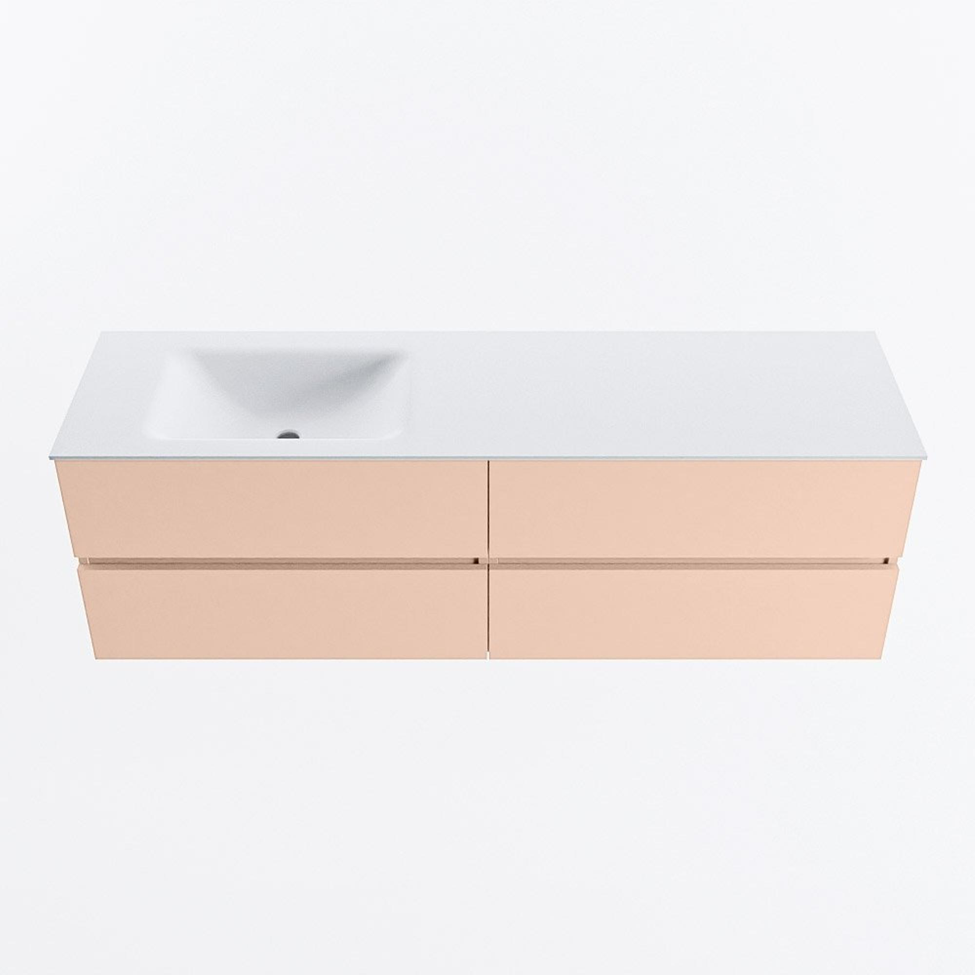 MONDIAZ Vica Badkamermeubelset - 160cm - onderkast rosee - 4 lades - wastafel cloud links - zonder kraangaten - 60cm hoge versie - talc