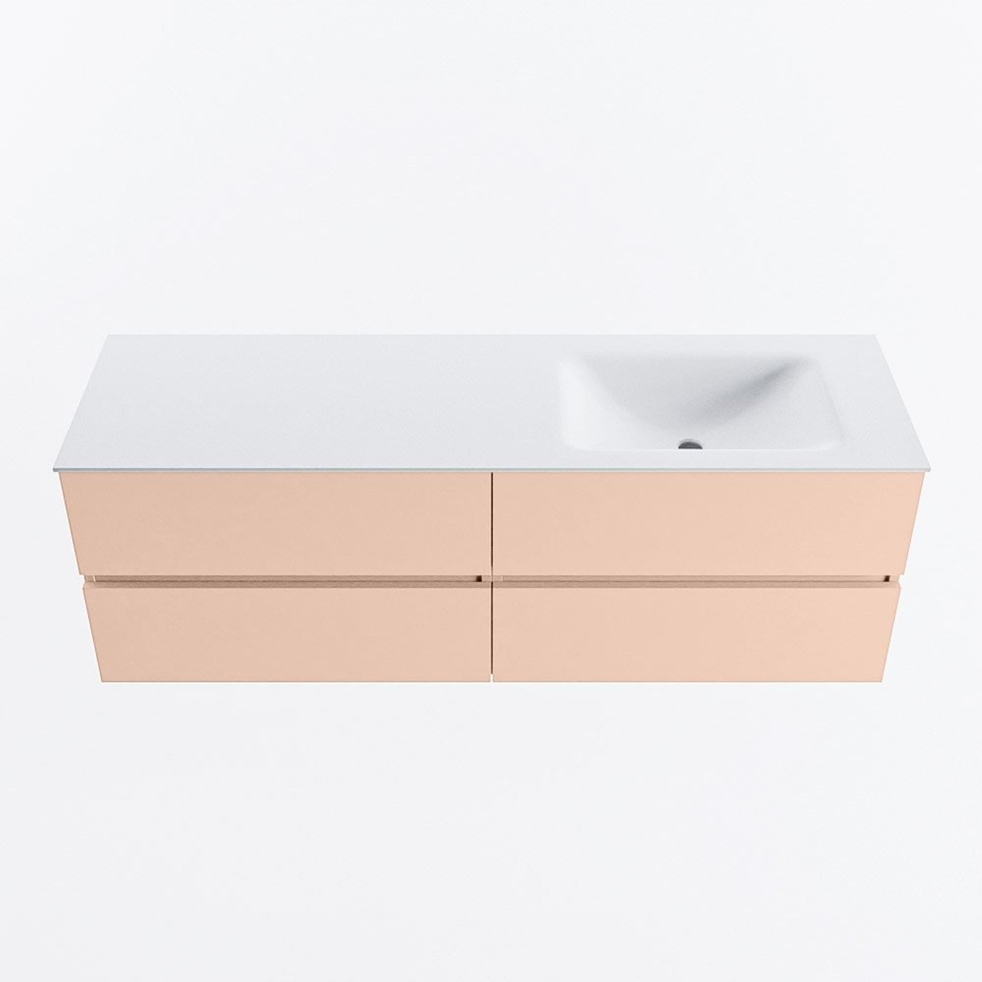 MONDIAZ VICA Badkamermeubelset - 150cm - onderkast rosee - 4 lades - wastafel cloud rechts - 1 kraangat - 60cm hoge versie - talc
