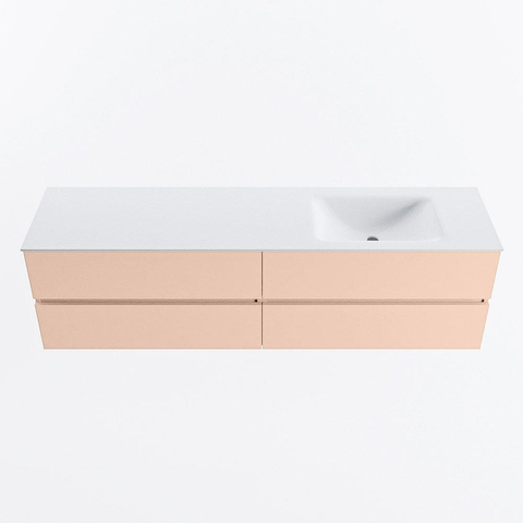 MONDIAZ Vica Badkamermeubelset - 180cm - onderkast rosee - 4 lades - wastafel cloud rechts - 1 kraangat - 60cm hoge versie - talc